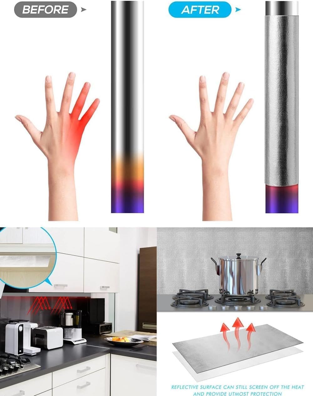 【Convenient to Apply】—- Innovatively designed with adhesive composite on its back, the heat shield protection barrier cover can be easily wrapped or laid on to any desired surfaces with a professional-like finish, make it clean and tidy.