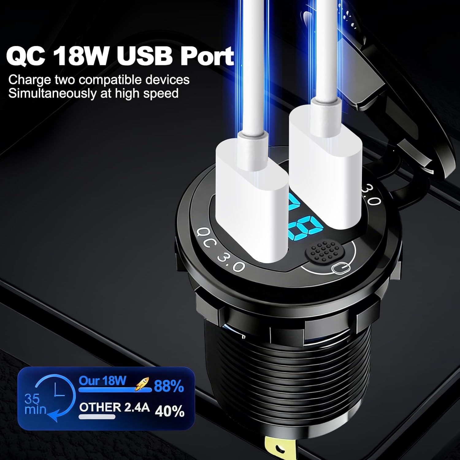 Flush Mount Design Reduces Looseness and Movement Unlike traditional cigarette lighter plugs that may loosen or lose contact on rough roads, this product features a fixed mounting design. It fits securely into your dashboard or console. During off-road driving, high-speed boating, or bumpy motorcycle rides, the charger stays stable for consistent charging.