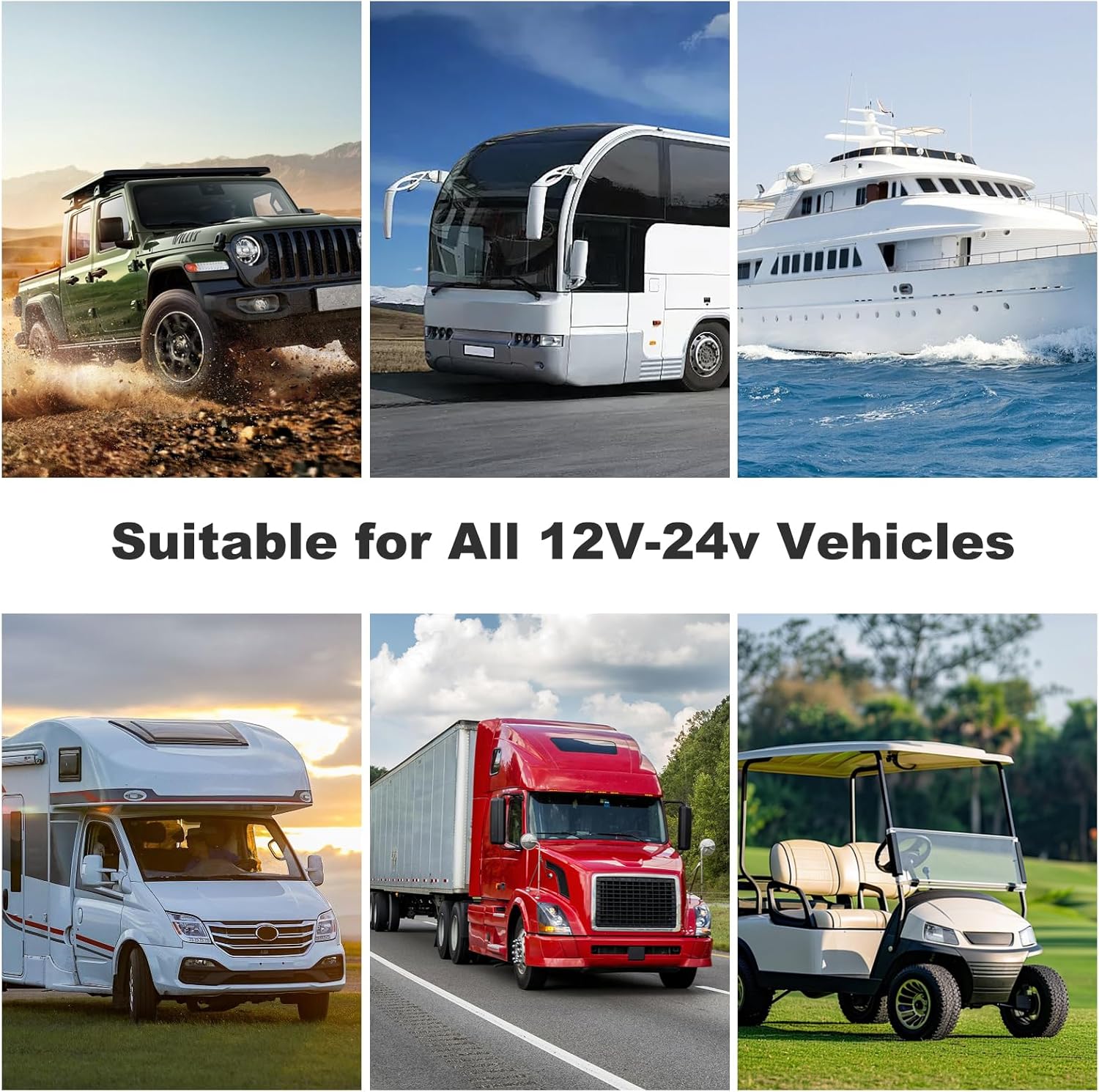 Aluminum Alloy Body This charger features a machined aluminum alloy body. The metal construction helps with heat dissipation and resists corrosion and vibration. Suitable for use in boats, RVs, motorcycles, and 4×4 vehicles.