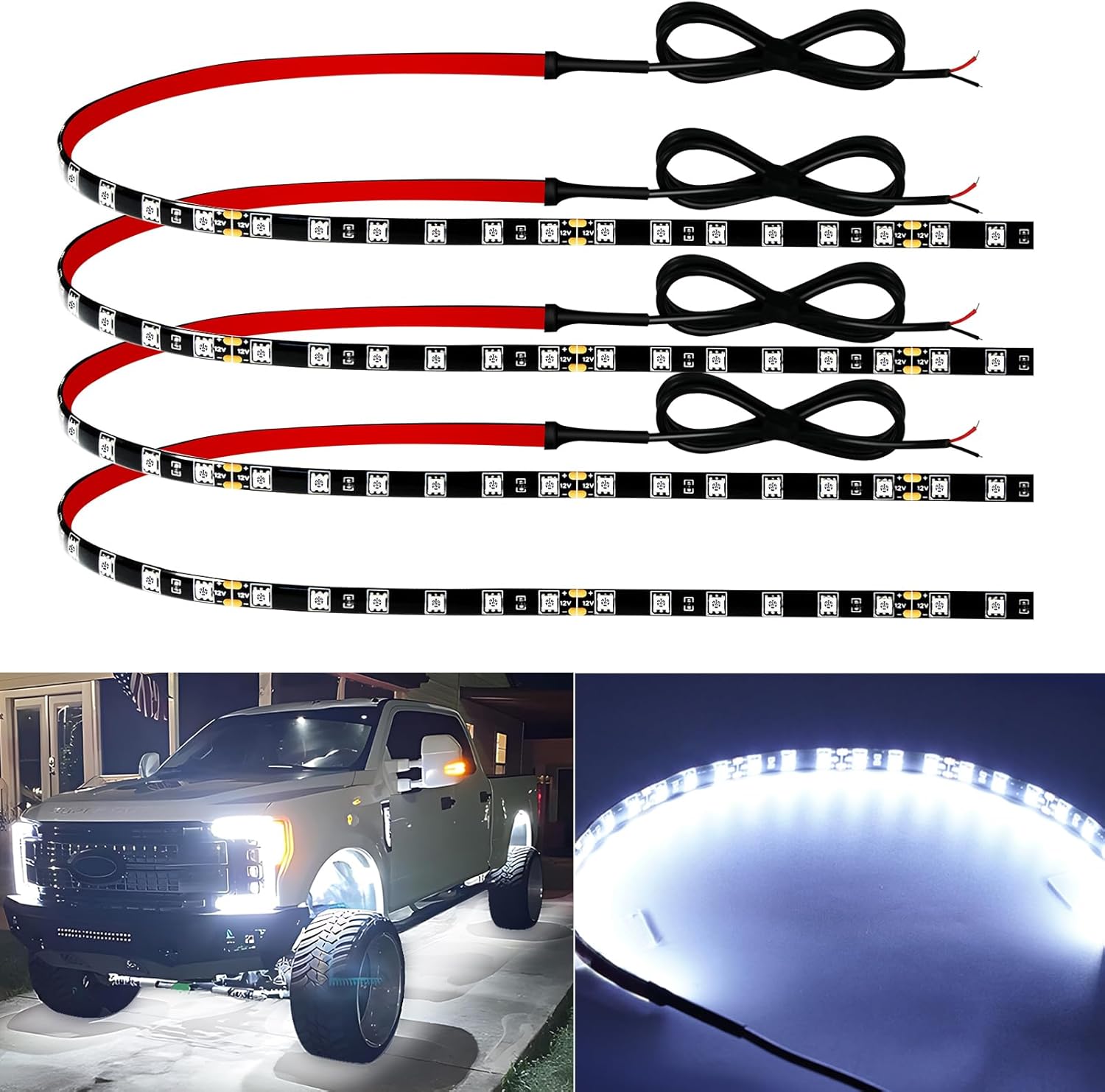 【Connectable Design】This versatile 18inch led light strip for car offer a convenient solution for illuminating various spaces. Each individual waterproof led strip lights 12v measures 18 inches in length. two of these strips can be easily interconnected, allowing for a seamless extension and resulting in a total length of 36 inches