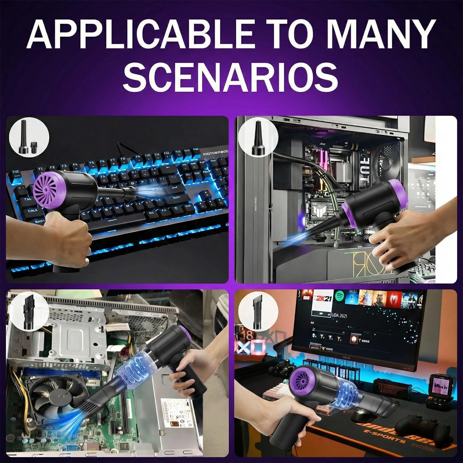 🛡️ Safe for Delicate Electronics: Unlike canned air, which can spray freezing liquid propellant that damages sensors or circuit boards, this electric duster uses only plain air. It is the safest choice for cleaning motherboards, graphics cards, and delicate camera sensors.