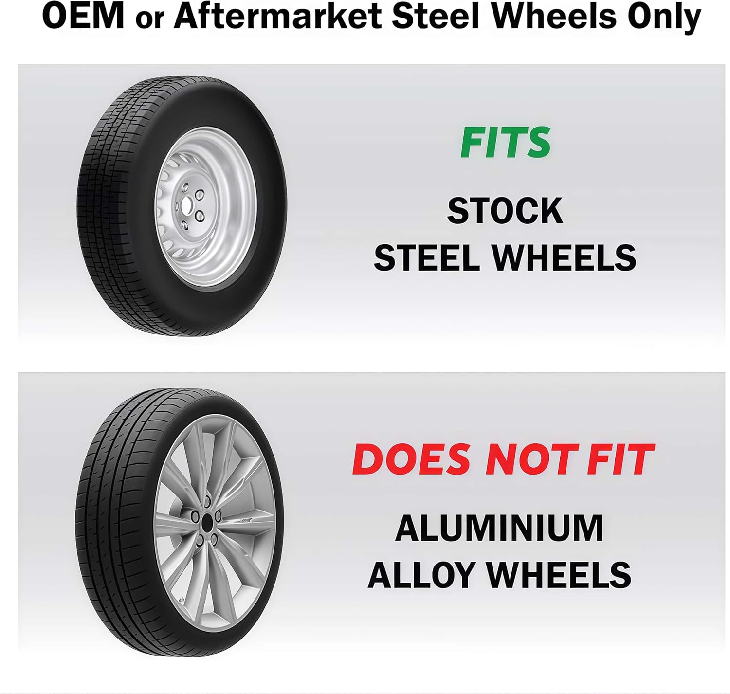 【Universal Fit】 Designed to fit most 14 inch steel wheels, easy snap-on installation.