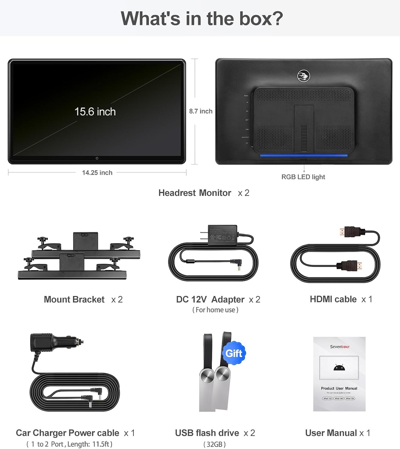 Seventour 15.6“ Universal Portable Car TV Headrest Monitor for cars
