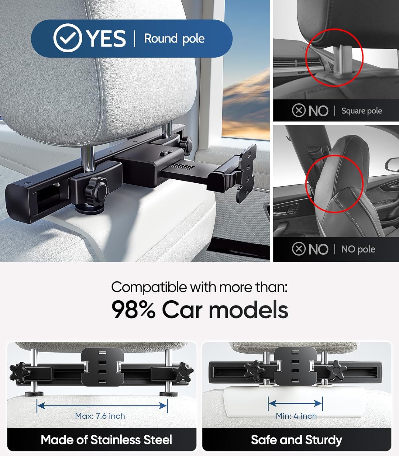 Compatible with more than 98% of the car models installed on the market (as long as the headrest is a round pole).
