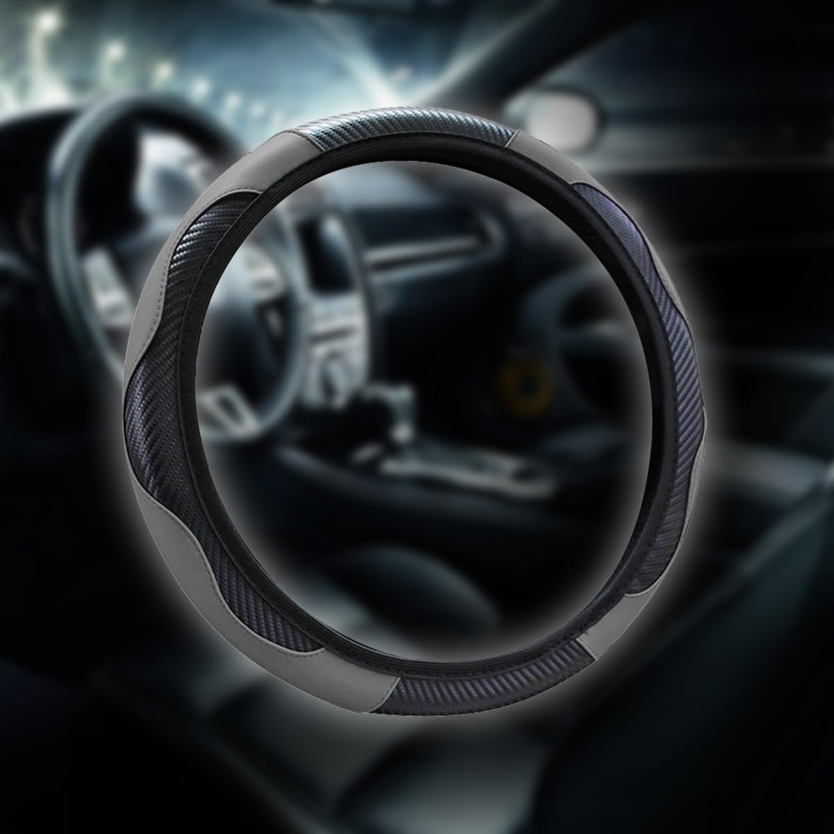 The Car Steering Wheel Cover, designed for 15-inch wheels, is a fantastic upgrade that combines style, comfort, and functionality. With its anti-slip features, carbon fiber aesthetics, and microfiber PU leather, this cover enhances both the look and feel of your steering wheel. Here’s a detailed review of its performance and features:Sleek and Modern Design: The cover’s carbon fiber and microfiber PU leather design give it a sleek, modern appearance that adds a touch of sophistication to any vehicle’s interior. The black finish is versatile and complements a variety of car interiors, making it an attractive accessory that elevates the look of your steering wheel. The carbon fiber texture also provides a sporty, high-tech feel.Enhanced Grip and Anti-Slip Performance: One of the standout features of this steering wheel cover is its anti-slip design. The microfiber PU leather provides a secure grip, reducing the chances of your hands slipping during driving, especially in wet or humid conditions. This feature enhances driving safety and ensures a more controlled steering experience. The textured surface also adds comfort, making it pleasant to handle.Comfort and Durability: The cover is made from high-quality PU leather and microfiber, offering a soft yet durable surface. The cushioning is just right—not too thick to interfere with steering, but enough to provide added comfort during long drives. The materials are also resistant to wear and tear, ensuring that the cover remains in good condition even with regular use.Easy Installation: Installing the cover is straightforward and hassle-free. It fits 15-inch steering wheels perfectly, and the flexible material makes it easy to slip onto the wheel. Once in place, it stays securely, without any risk of shifting or slipping. The installation process does not require any special tools or professional assistance.Improved Driving Experience: The combination of the anti-slip grip and the cushioned surface enhances overall driving comfort. The steering wheel feels more comfortable in your hands, and the added grip provides better control, making driving more enjoyable. The cover also helps to keep the steering wheel clean and protected from wear and dirt.Maintenance and Cleaning: Maintaining the cover is simple. The PU leather surface can be easily wiped clean with a damp cloth to remove any dust or spills. The durable materials resist stains and are easy to keep looking new, contributing to the overall low-maintenance nature of the cover.Overall Impressions: The 15-inch Anti-Slip Steering Wheel Cover is an excellent choice for anyone looking to upgrade their driving experience with a blend of style and practicality. Its modern carbon fiber design, combined with the functional anti-slip grip and comfort-enhancing materials, makes it a valuable addition to any vehicle. The easy installation, durability, and low-maintenance nature further add to its appeal. Whether for improving driving comfort or refreshing your car’s interior, this steering wheel cover delivers impressive performance and style. Highly recommended for both men and women who want a stylish yet functional upgrade for their steering wheel.