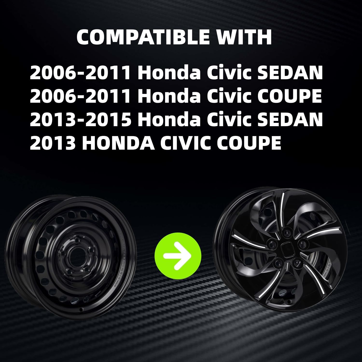 【 FITMENT 】— Compatible with 2006-2011 Honda Civic SEDAN;2006-2011 Honda Civic COUPE; 2013-2015 Honda Civic SEDAN; 2013-2013 HONDA CIVIC COUPE;⚠️Note: Only Fit Steel Wheels, Not for Aluminium Alloy Hubs or other size wheels. Please ensure the Tire/Wheel Size of your vehicle must be 15 inches-Steel Wheels, thank you!