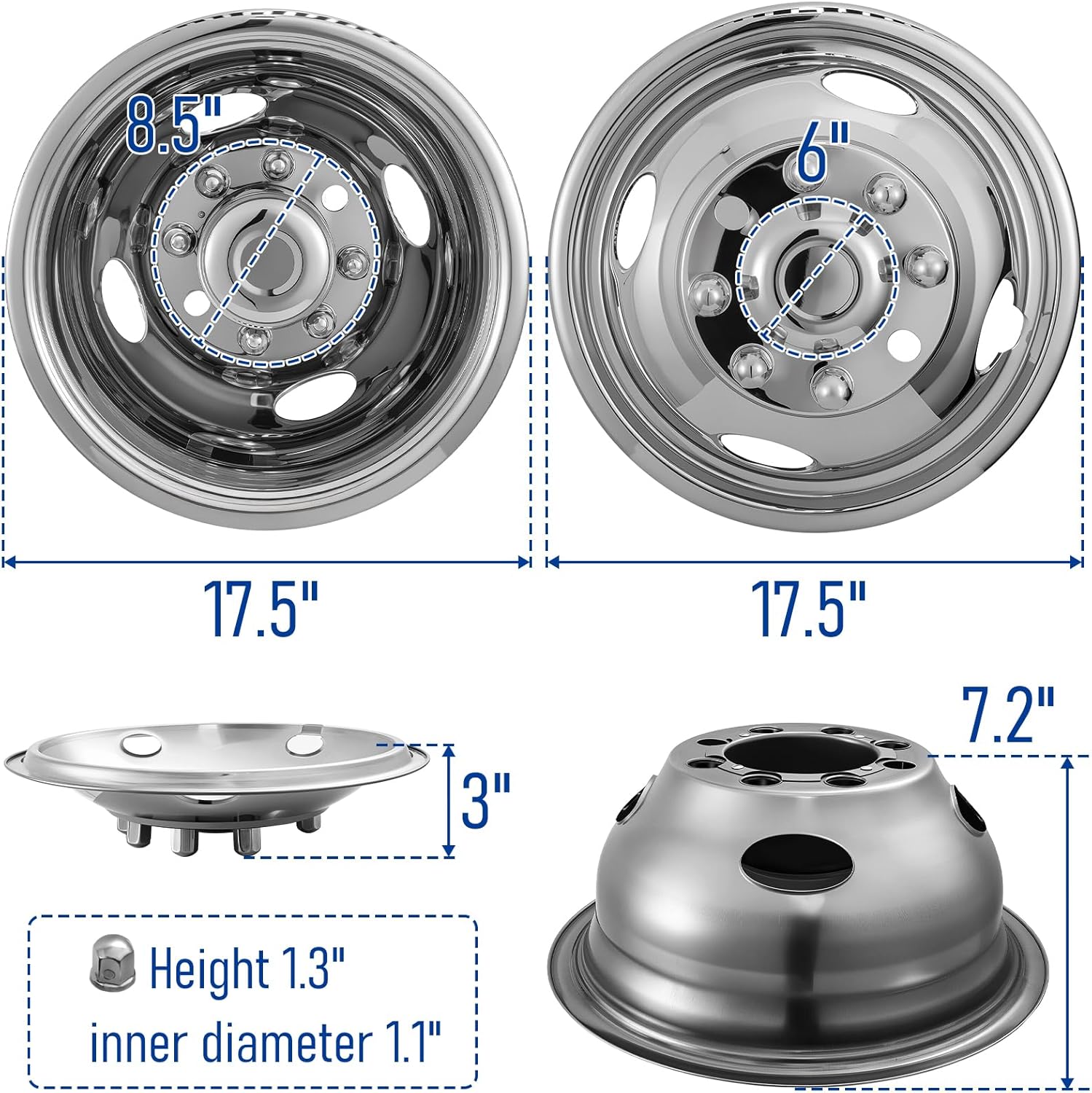 5 reviews for 16″Wheel Simulators,16″8 Lug Stainless Steel Hubcaps with Wheel Lug Bolts Kit,Polished Finish,2Front Wheels/2Rear Wheels,Wheel Simulators Suitable for Ford E350/E450 (1992-2016,2018-2021;2017Not Fit)