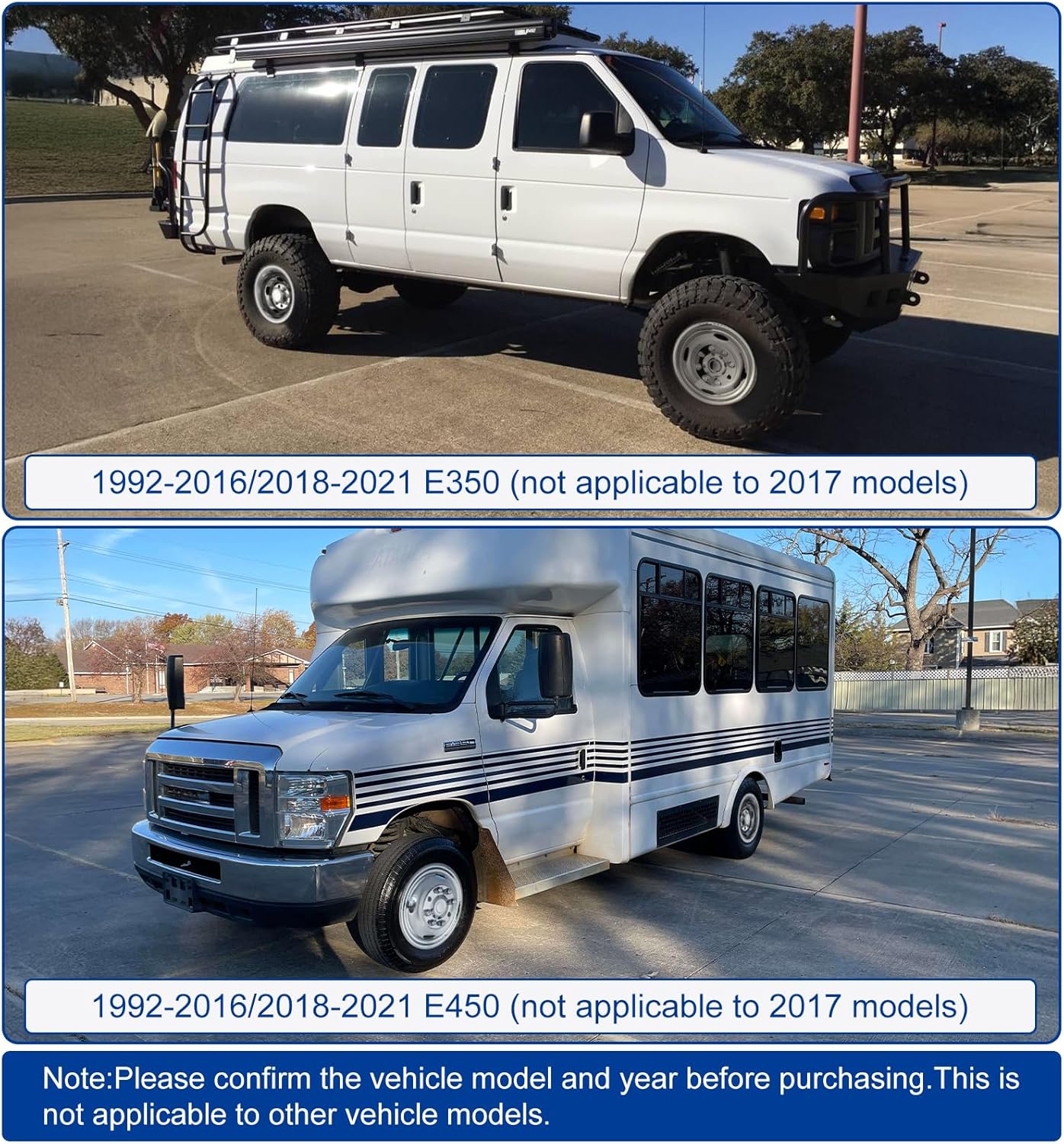 COMPATIBLE WITH: 16″ 8 Lug Stainless Steel Hubcaps for E350/E450 1992-2016/2018-2021 (2017 ford e450 forrest River forrester and 2017 Ford E350T) ;Note: Do not fit 2004 E-450 Super Duty Jamboree Motor home, please check the year and model of your vehicle carefully before purchasing to ensure it is compatible.