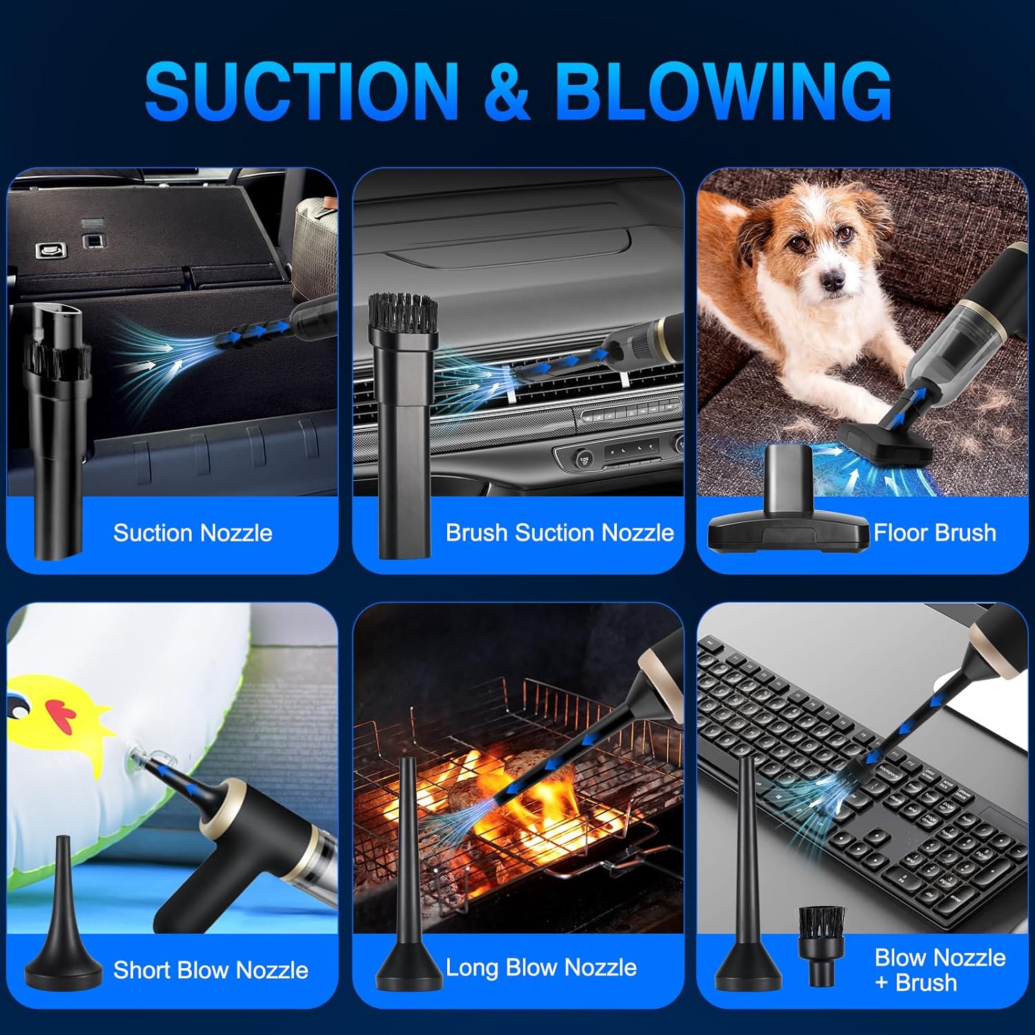 2-in-1 Handheld Vacuum & Blower with 20000PA Suction – 0.76 lb Weighs Mini Vacuum Cleaner Cordless for Quick Car, Home, Hand Vac with HEPA Filter & 5 Attachments