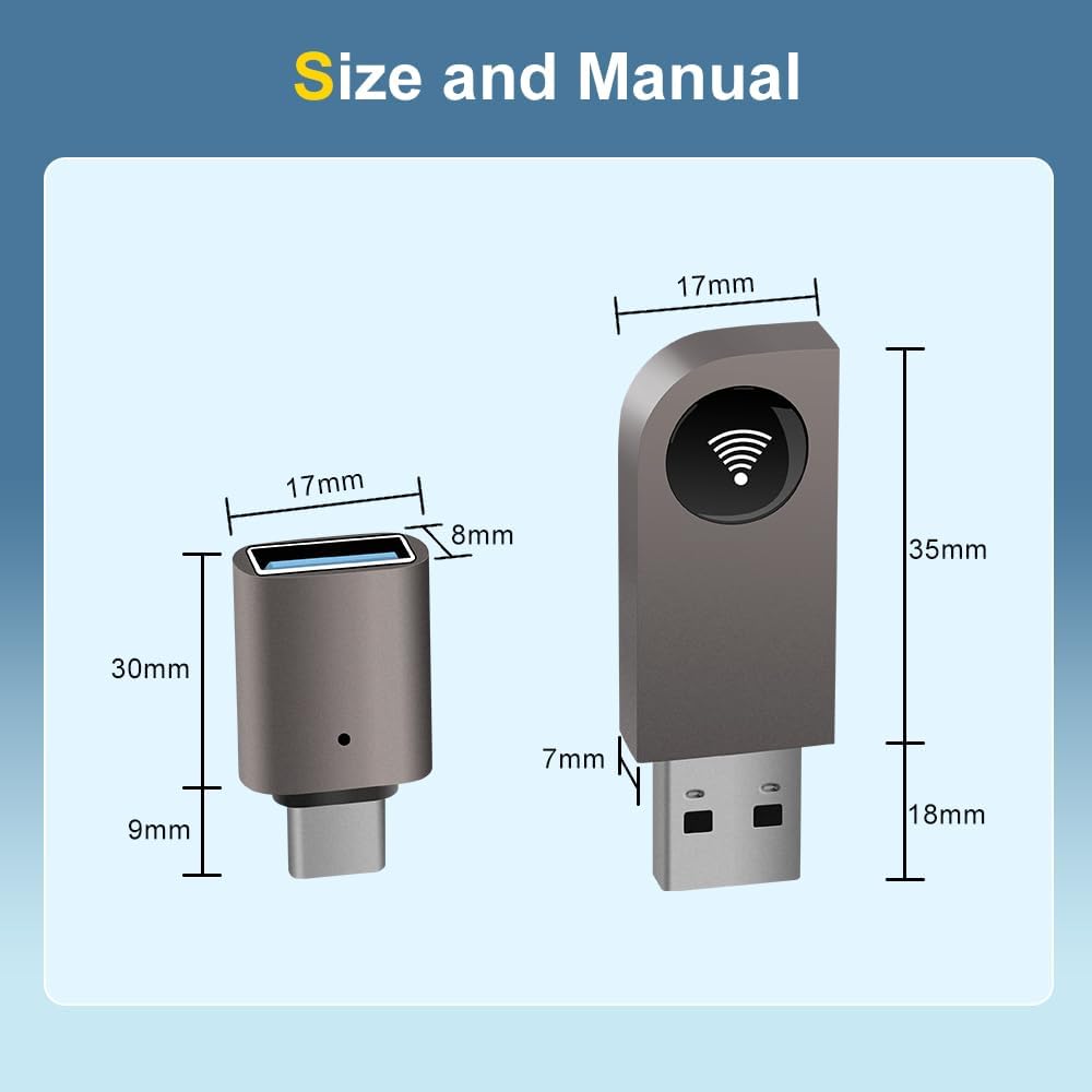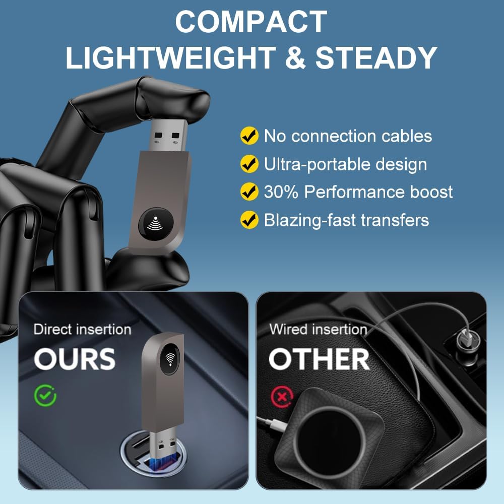 📏 Ultra-Compact Flush Fit & Universal Port Support: 50% smaller than competitors. Its compact size and lightweight design make it easy to carry with you without taking up much space in your car. for invisible installation in USB ports. Includes USB-A/USB-C adapters for hidden/angled ports—zero clutter, no dangling wires.