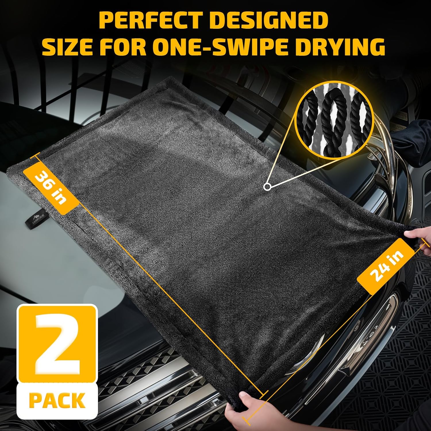 Streak-Free, Spot-Free Drying: With SMINDER’s car drying towels advanced 1200 GSM microfiber and twisted-loop technology, you’ll enjoy a flawless finish every time. Just one pass and your car is 100% dry, streak-free, and water spot-free. The microfiber towels for cars absorb up to an entire gallon of water, making them perfect for efficient, high-performance drying.