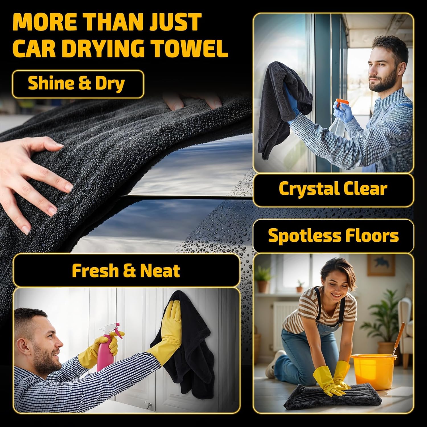 Versatile for Multiple Uses: Measuring 36” x 24” each, these microfiber cleaning cloths are not only ideal for car drying but also perfect for household cleaning, outdoor activities, or any situation where a highly absorbent, microfiber towel is needed. Versatile and large enough for various uses, they make an essential addition to any cleaning routine.