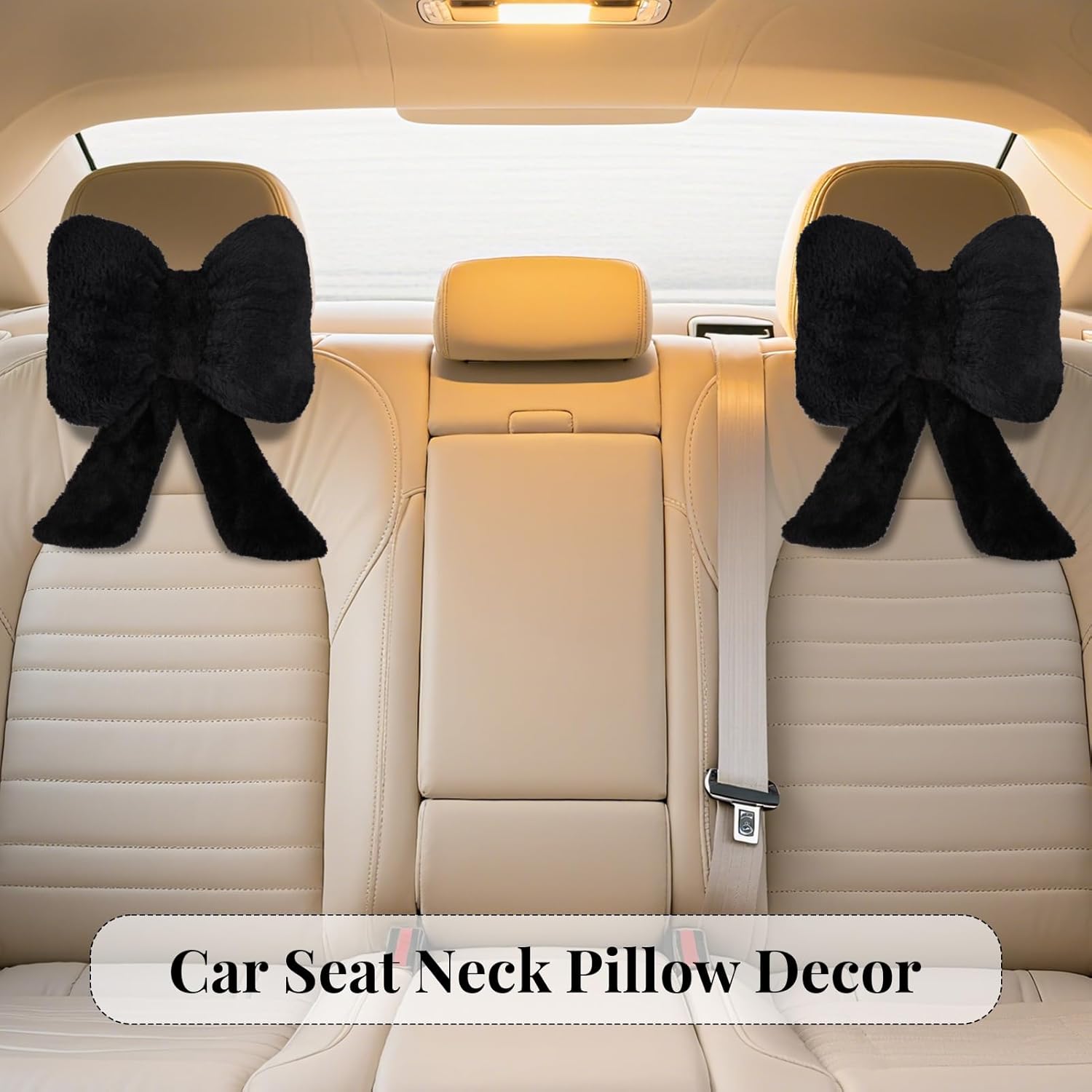 2 Pack Bow Car Headrest Pillows Plush Car Neck Pillows for Travel Driving Office Chair Head Support Cushions, Also Cute Car Decor Accessories (Black)