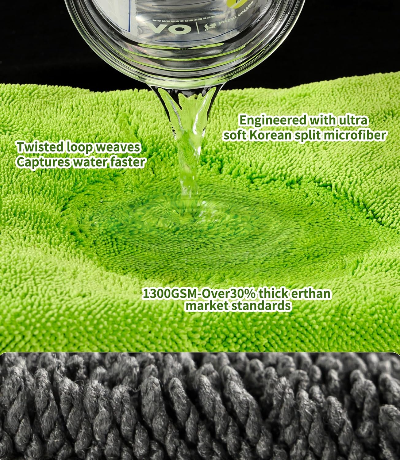 One-Pass Drying Technology – 1300GSM Ultra-Absorbent Power Engineered with advanced 1300GSM twisted loop microfiber that glides across surfaces, absorbing every water droplet in a single sweep. This professional detailing towel