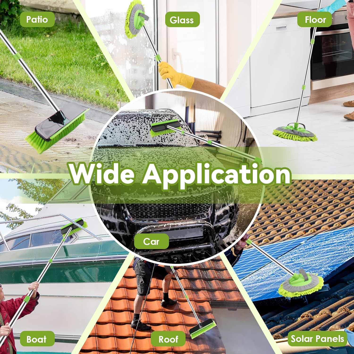 Widely Application: Both car wash wand and truck wash brush can use wet or dry to solve your different cleaning needs. Not only can you wash a car, truck, bus, motorcycle, SUV, RV, but the car cleaning supplies is awesome for boats, decks, floors, patios, windows, sheds, solar panels, ceiling fans, kids slides & more, and perfect for snow removal. Handles of car brushes for washing exterior are designed for threaded screw mounting, making car washing supplies quick and easy to install and remove