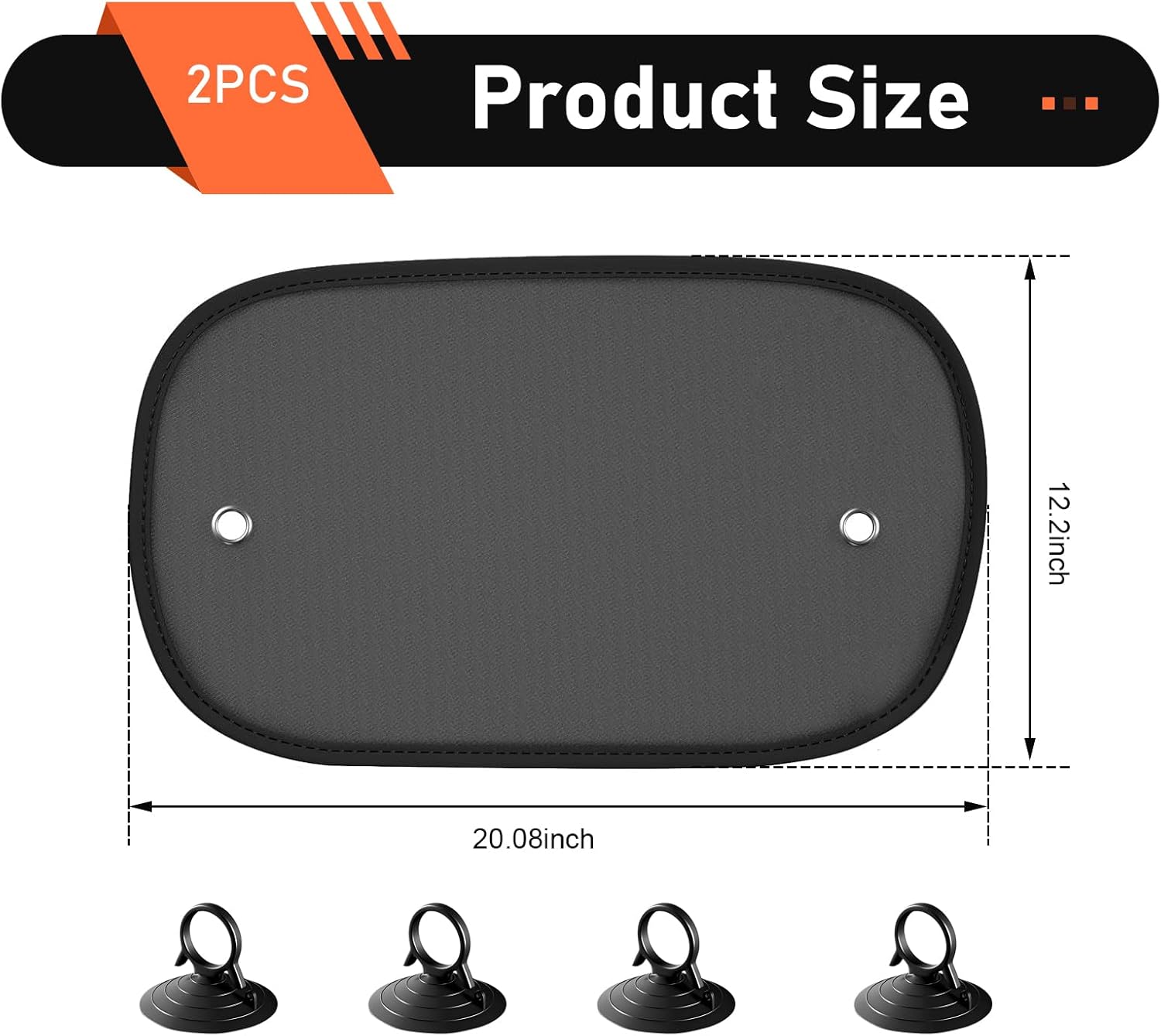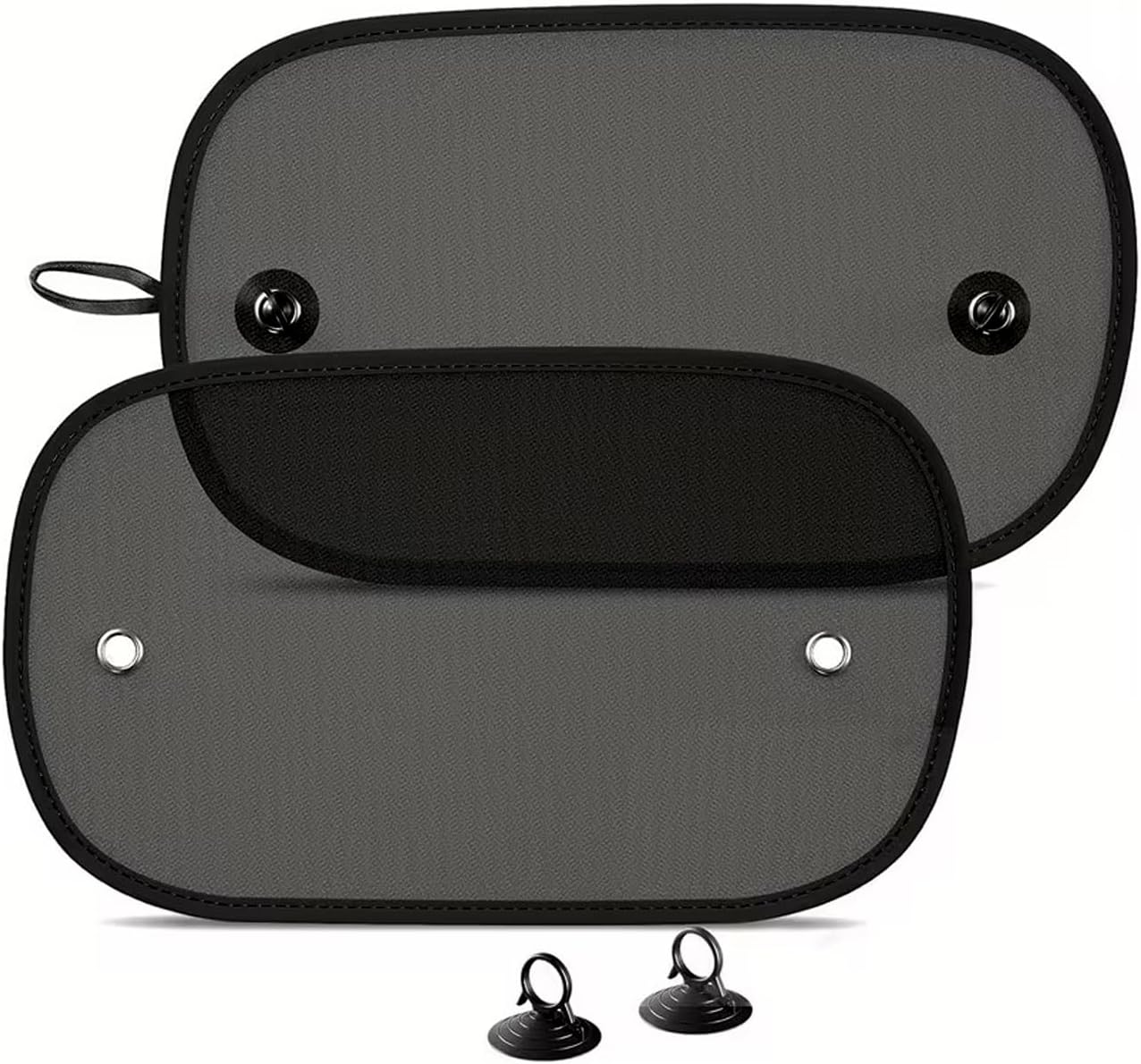2 Pack Car Window Shades, Universal UV Protection Sunshade for Side Windows, Strong Light Glare Blocking Suction Cup Curtain, Privacy Shield for Baby Sleeping Camping Napping, Fit 98% Most CarsThis listing is for a small pack of 2 window shades. The listing states that the shades protect for about 80% of the light transmission including reducing the risk of UV exposure. The shades include suction cups to hold on to whatever window you attach them to which makes them pretty much universal to fit almost every vehicle out there.The shades are approximately 20″x12″ and weigh only a few ounces each. They are an oblong / oval shaped which allows for proper sun resistance for most windows. The suction cups are strong and I have tested them on both tinted and non-tinted windows and they have adhered for long trips with zero issues.I have been using these shades for nearly 3 weeks on long haul trips of about 90-120 minutes one way and these have provided excellent sun resistance for the passengers in my backseat. They provide an additional resistance to the tint that is already on the back seat and I have tested that it reduced my back seat temperatures by about 15° on a very hot day. I also notice I do not need to run my AC at as high of a rate to keep the car cool. Removal of the sun shades is simple by pulling on the removal nipple and it comes off without leaving any marks or marring the window or tint. It works great putting them up and taking them down.This listing is a great value for a decent set of strong adherence shades which are a decent price. Overall this listing would be ideal for someone who wants to provide sun resistance to someone who is maybe napping in the backseat or possibly protecting a baby / child from sun exposure. Overall I am very happy with my purchase and I’m glad i picked these up.