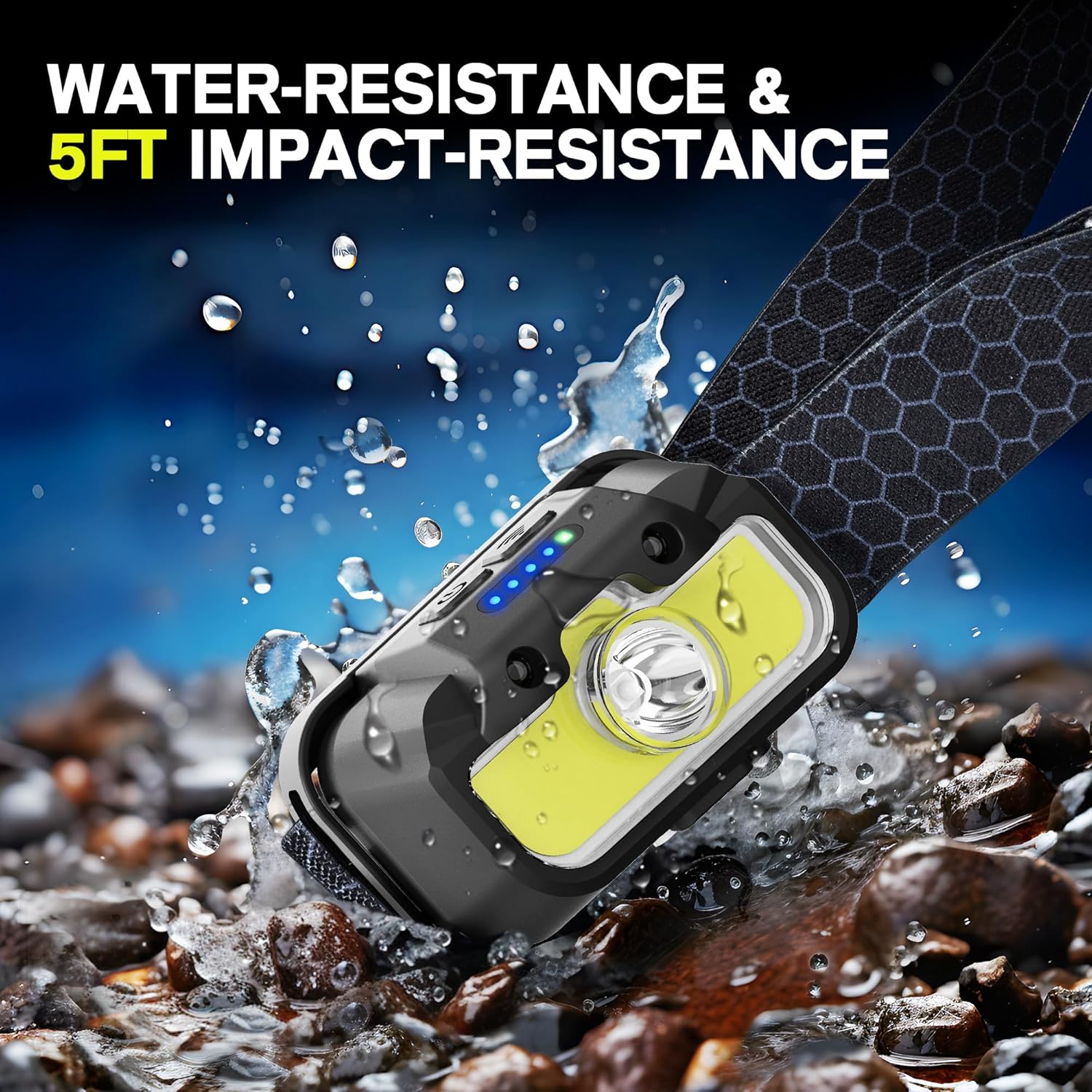 【Waterproof and Stable】: The headlamp flashlight has IPX4 waterproof rate. The high-quality shell is more sealed and leak-proof, which is suitable for rain or snow, indoors or outdoors.