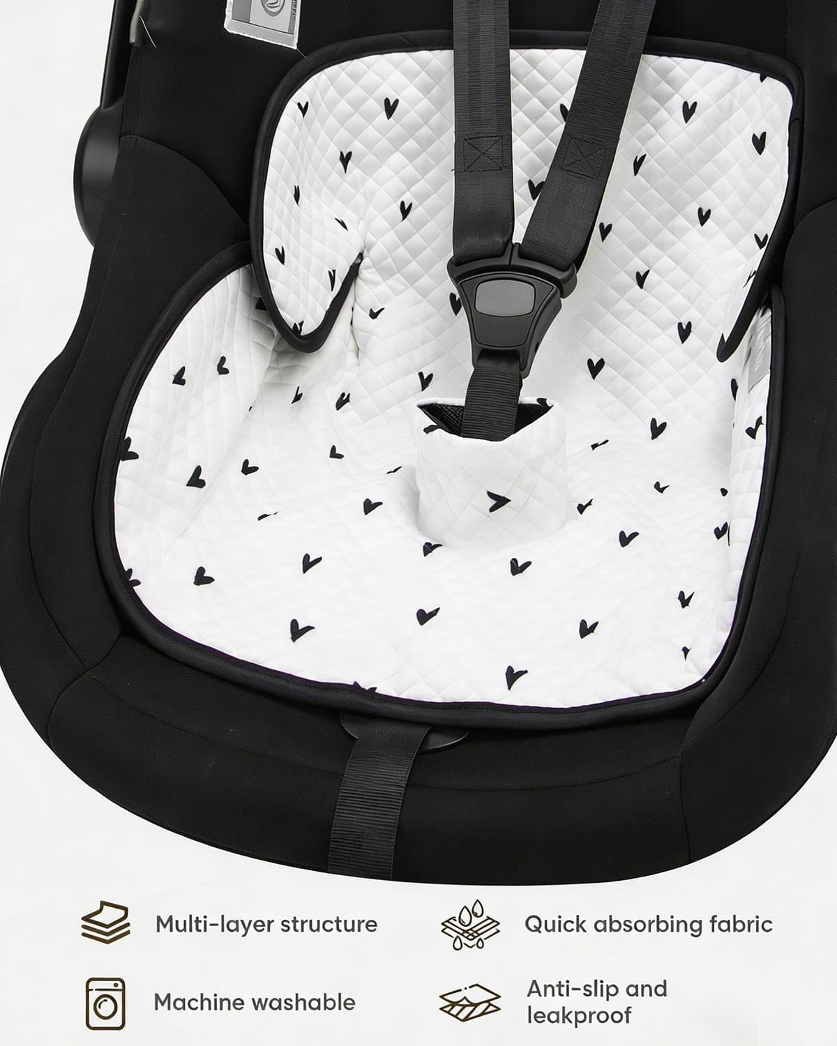 Fits pretty much any car seat. Love the fact that they’re washable and easy to wipe out.