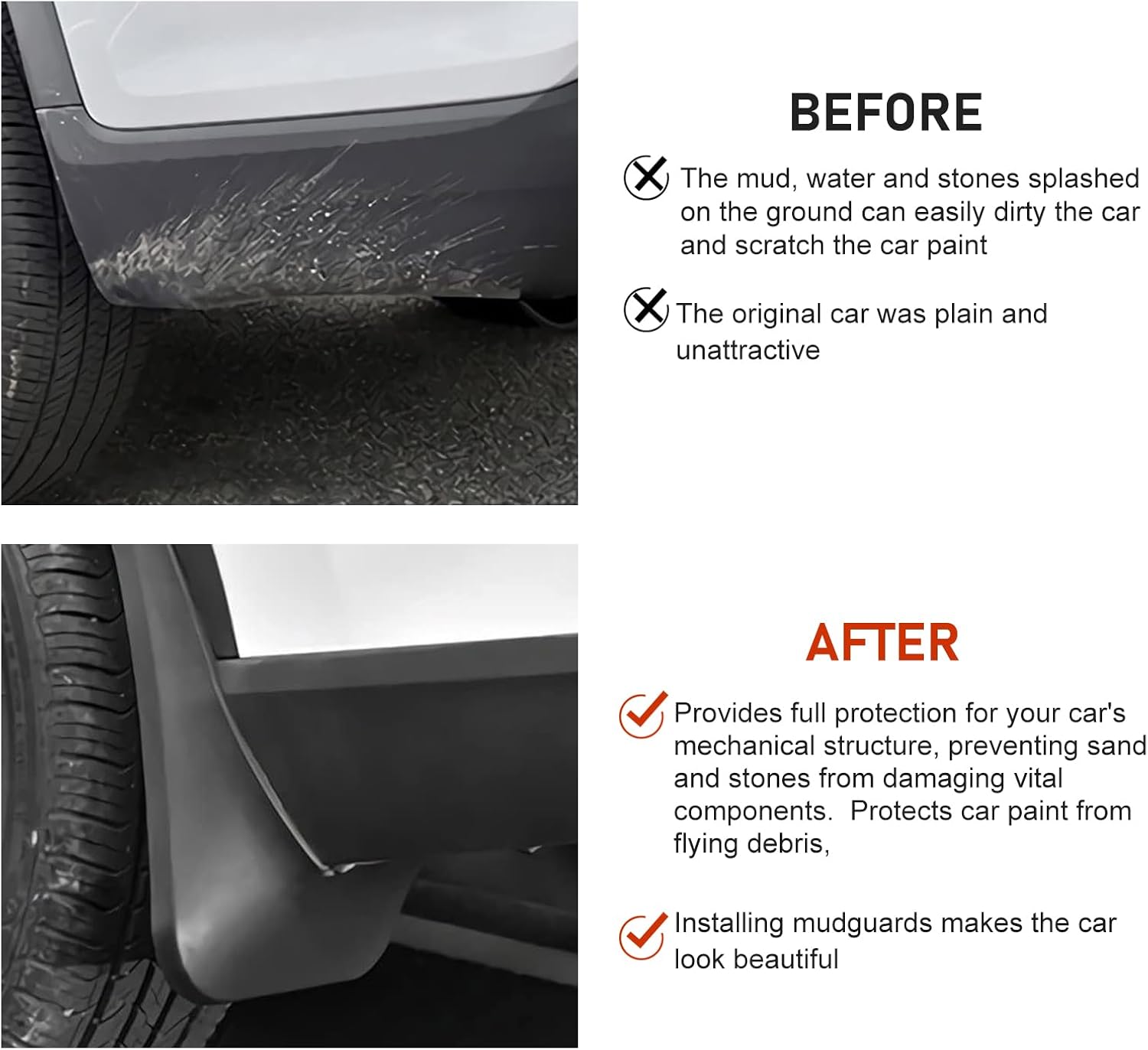 Installation: This car mud flap is easy to install. First, remove the original vehicle screws, then install the mud flap using the original vehicle screws or the provided screws. The entire process is simple and does not require professional skills.