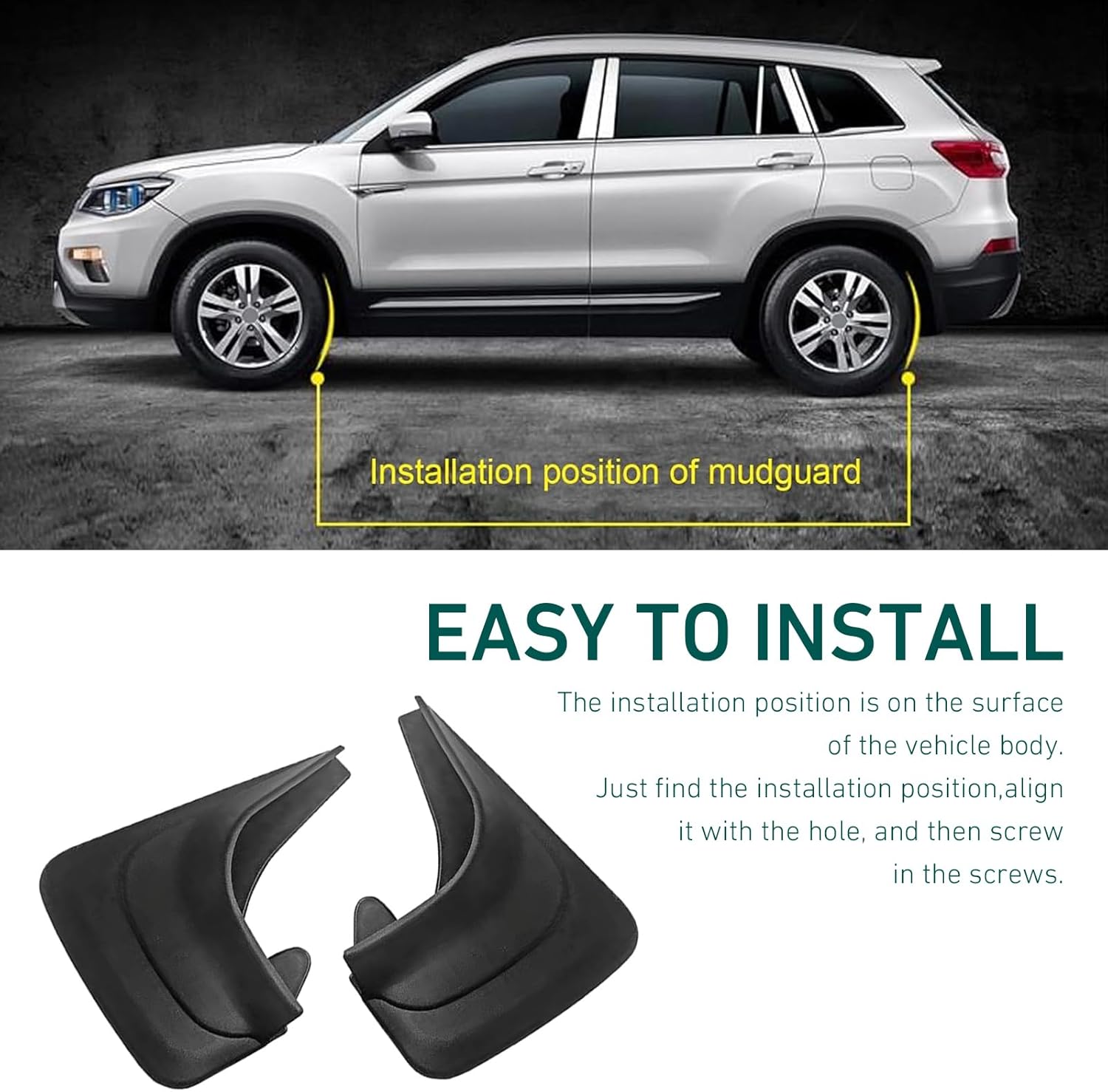 Easy Installation: Each tire splash guard features a simple design that allows quick mounting on the front and rear locations. The lightweight structure makes installation easy and stable offering a straightforward way to add mudflaps to keep your vehicle protected.