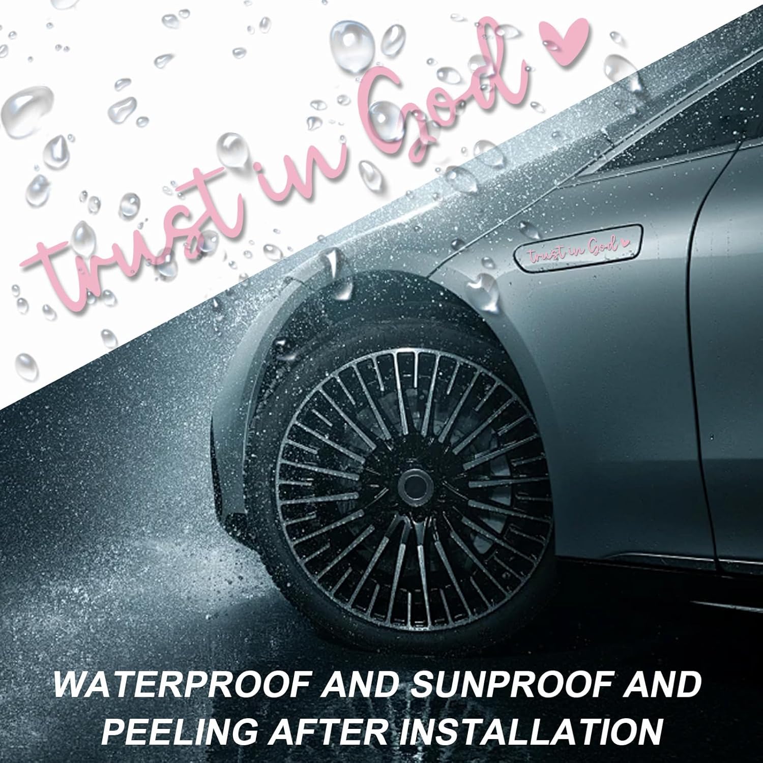 【Durable & Reliable】: Made from high-quality vinyl material, these “Trust in God” decals are waterproof and heat-resistant. With this colorfast and durable material, you can apply them to your car rear view mirror without worrying about fading or wearing, giving them a long service time.