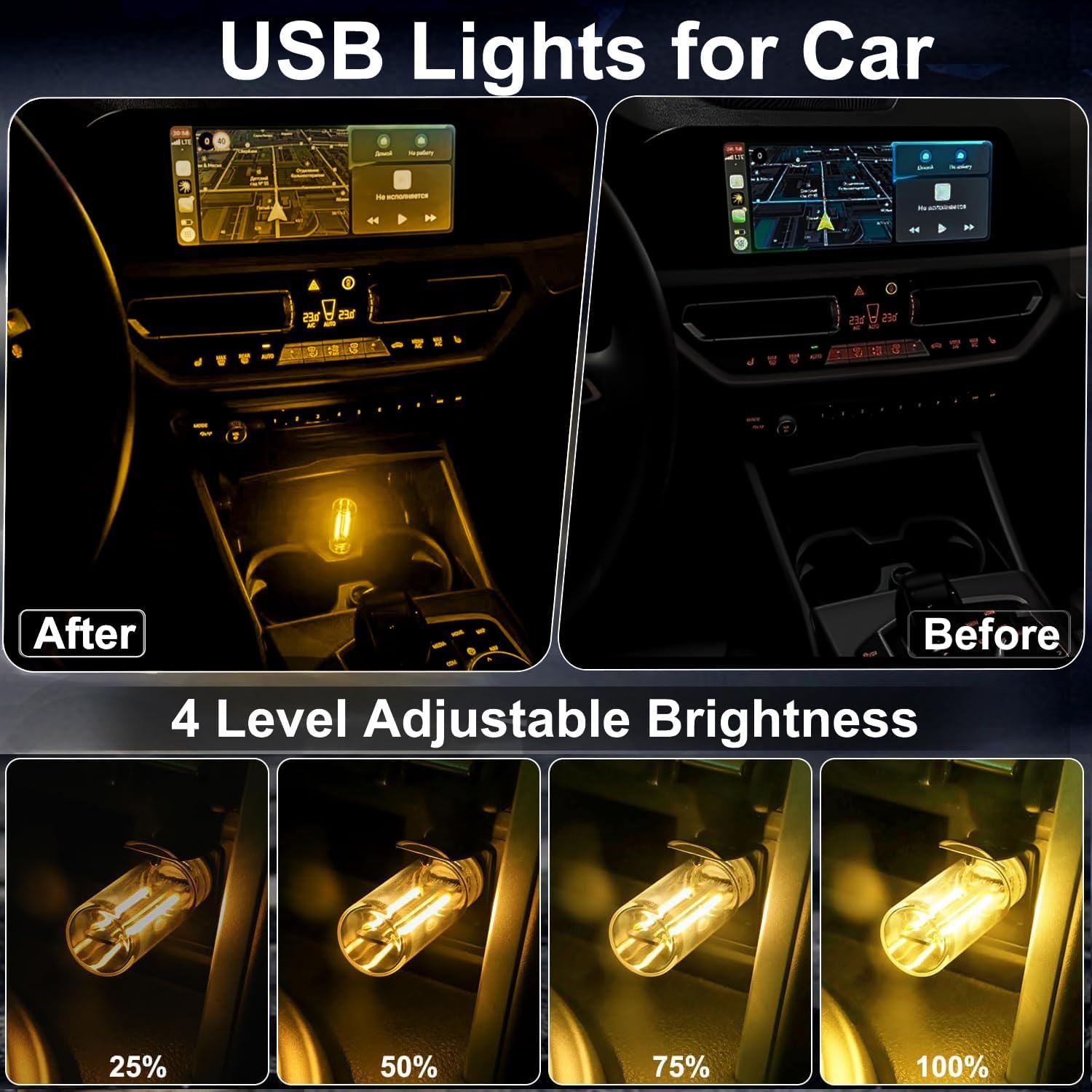 2 PCS USB Car Interior Lights, Plug-in Retro Car Atmosphere Lamps with Touch Adjustment, Portable Mini Nightlights, Universal Ambient Lighting Kits for Vehicle Interior Accessories (Yellow)