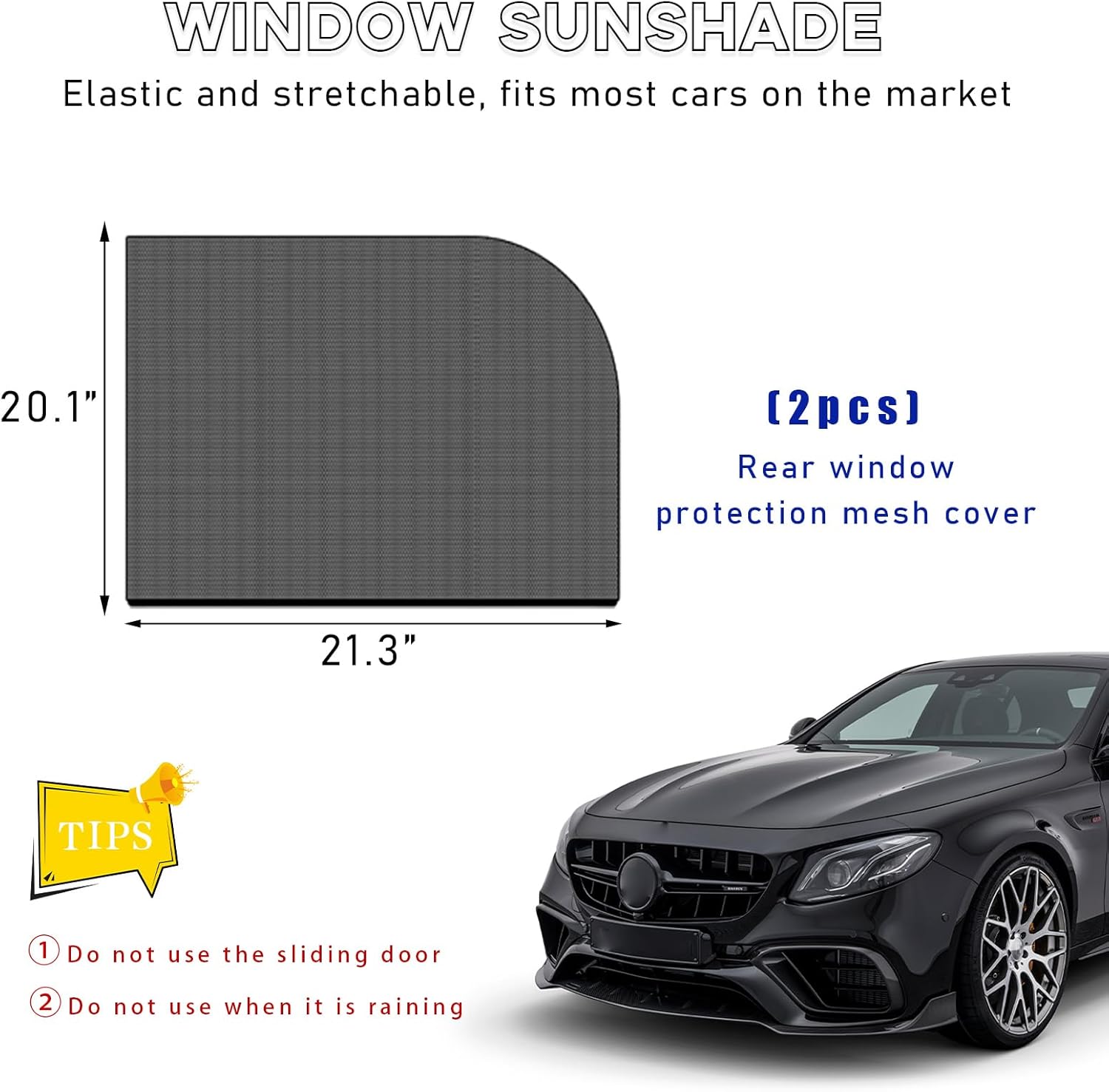 【Great Material】: This product is made of mesh screen, which is well ventilated, so you won’t feel stuffy inside the car after installation. It is elastic and tough, so stretching and adjusting it will not tear and damage it. It can be washed and dried easily and always stays the same for long time use and reuse.
