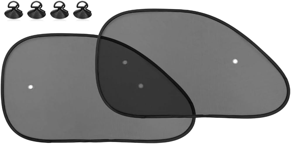 Designed with stretchable, elastic edges, these sun shades install in minutes and fit most car side windows. Includes 4 powerful suction cups for a secure, hassle-free setup.