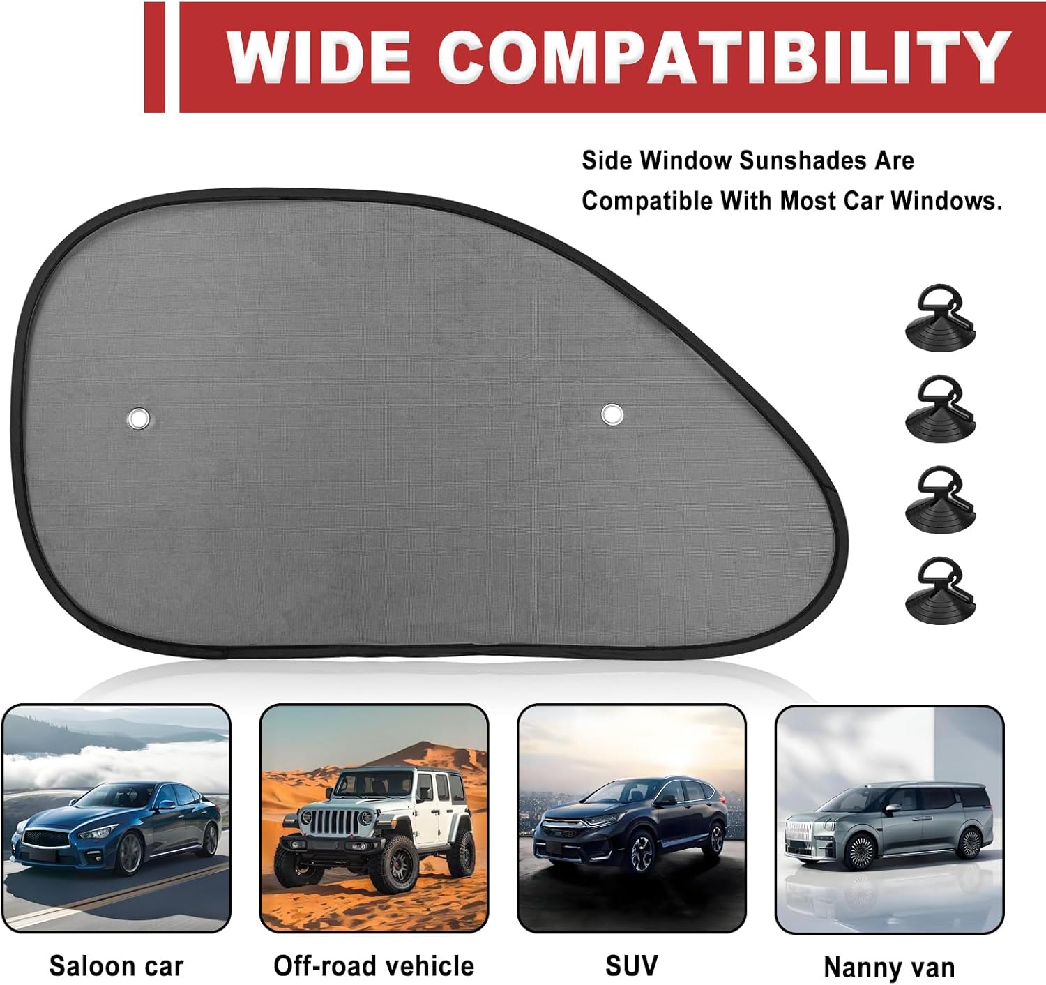 SECURE and STABLE INSTALLATION: Equipped with heavy-duty suction cups, our shades stay firmly attached to any window (driver/passenger side or SUV) without slipping, providing reliable shade wherever you go.