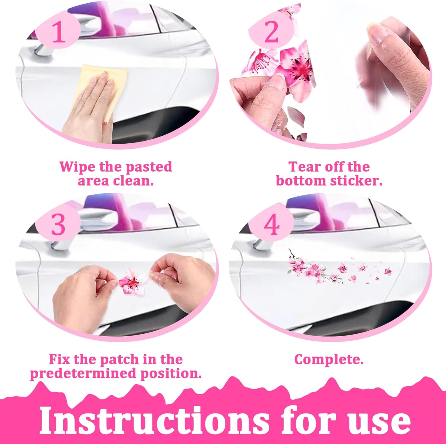 Product Use: Pink flower stickers, car stickers to cover scratches