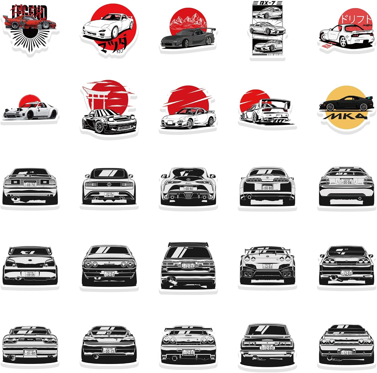 So many different JDM cars! The stickers are very nice and if you want remove they leave no sticky residue behind. Very good quality!