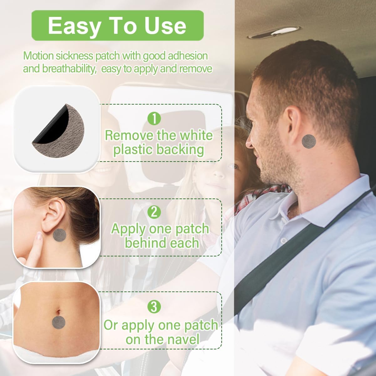 Easy To Use: Apply the adhesive layer to your belly button or behind your left and right ears, and please use the motion sickness patch 10 minutes before the travel