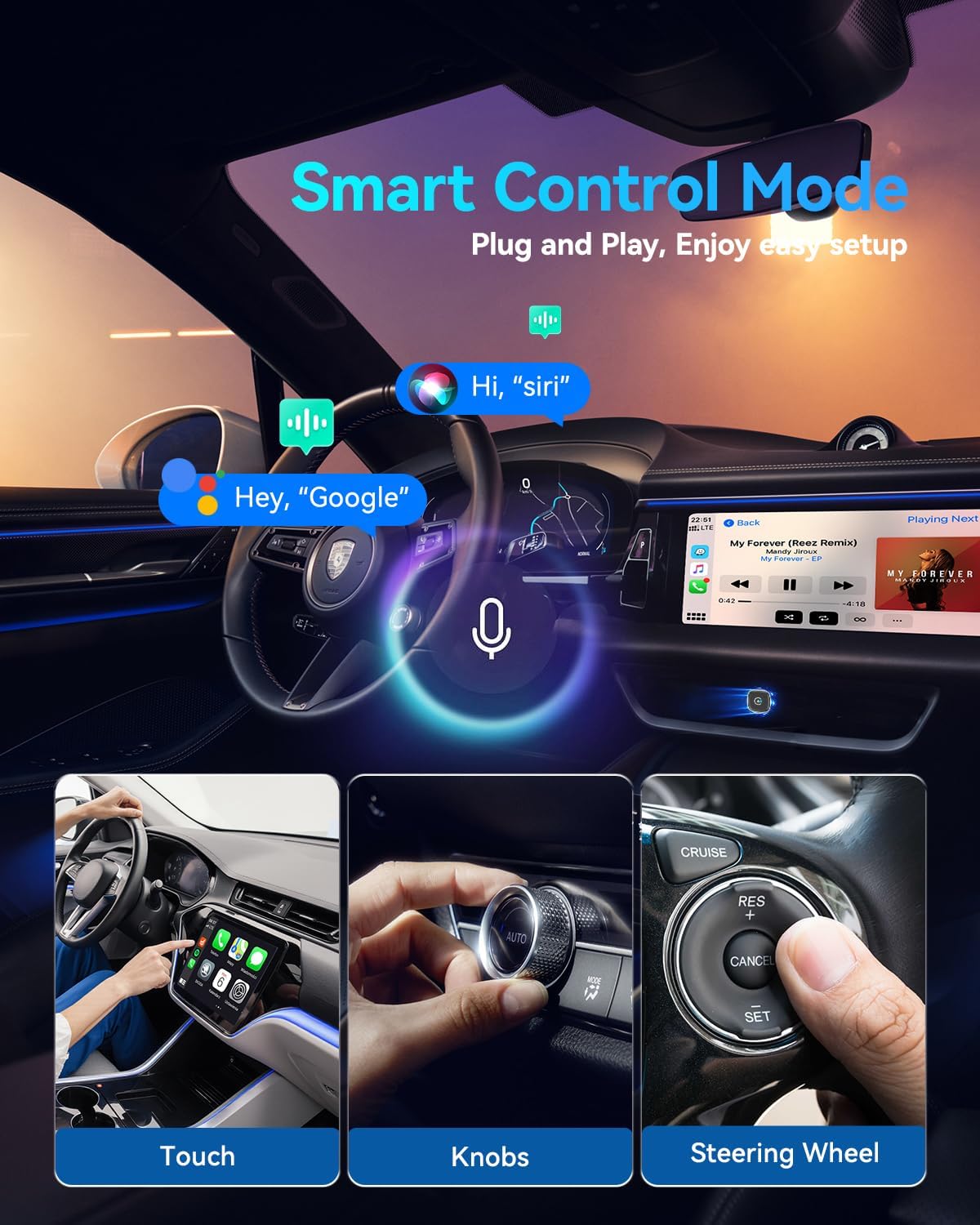 Smart Control – Wireless Android Auto adapter fully retains your car’s original functions: steering wheel controls, touchscreen, knobs, and voice commands all work seamlessly. Operate CarPlay’s navigation, music, Siri, calls, and messages safely and conveniently while driving. Supports both USB-C and USB-A connections—truly plug-and-play.