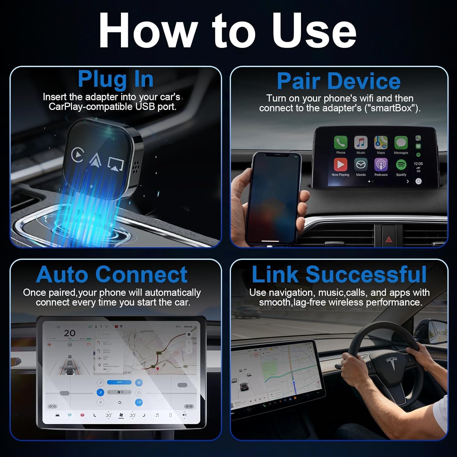 Mirror Phone to Car Screen Adapter: Plug-and-Play for Instant Connection This mirror phone to car screen adapter is ultra-easy to use: plug it into your car’s USB port, pair once, and it automatically reconnects every time you start your vehicle. Get a hands-free experience without complicated installation—ideal for busy drivers who want to stay connected safely (and avoid fumbling with cables while on the road).