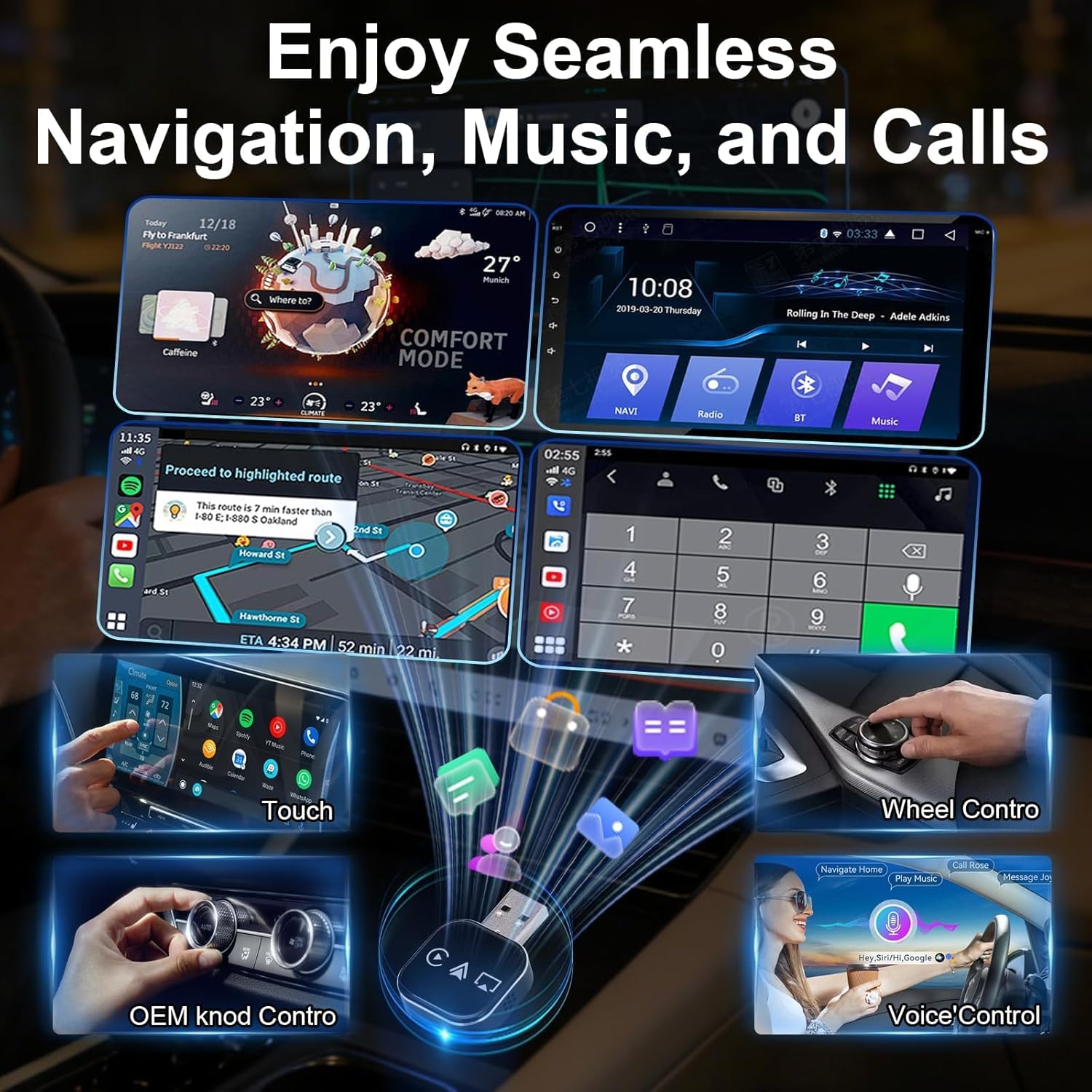 2026 Upgrade 3 in 1 Screen Mirror: Conversion for Seamless Streaming Our 2026 upgrade 3 in 1 screen mirror turns your car’s wired connection into a fully system using dual 2.4/5GHz WiFi and 5.0. Pair your phone in seconds and enjoy lag-free audio or screen streaming—perfect for navigation, music, or calls on daily commutes or road trips. No more tangled cables—just smooth, convenience for every drive!