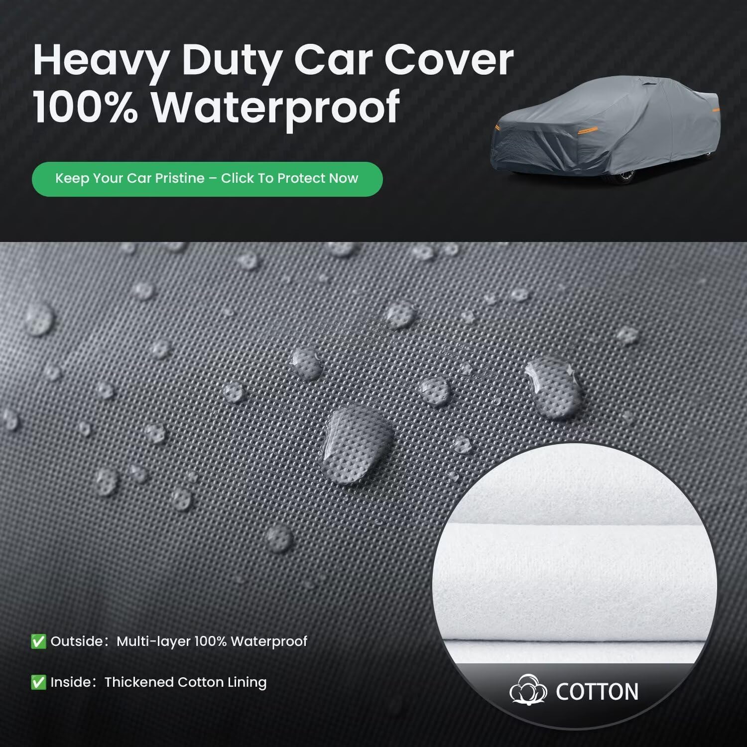 【Heavy-Duty Materials】Dozentro car covers are constructed from heavy-duty materials. The outer layer of PE provides 100% waterproofing, while an aluminum membrane in between extends the cover’s lifespan. This makes it an excellent choice for long-term use.