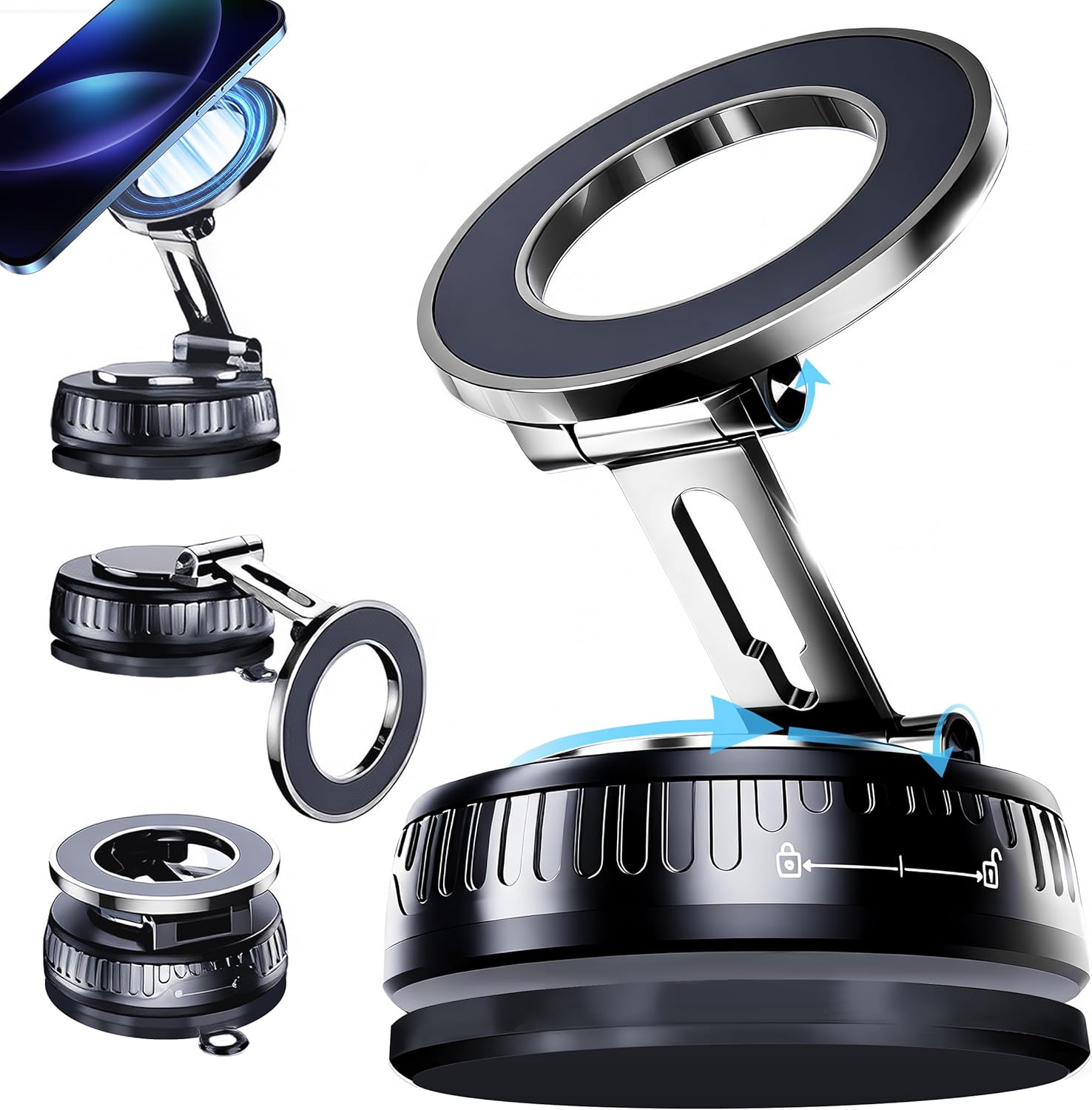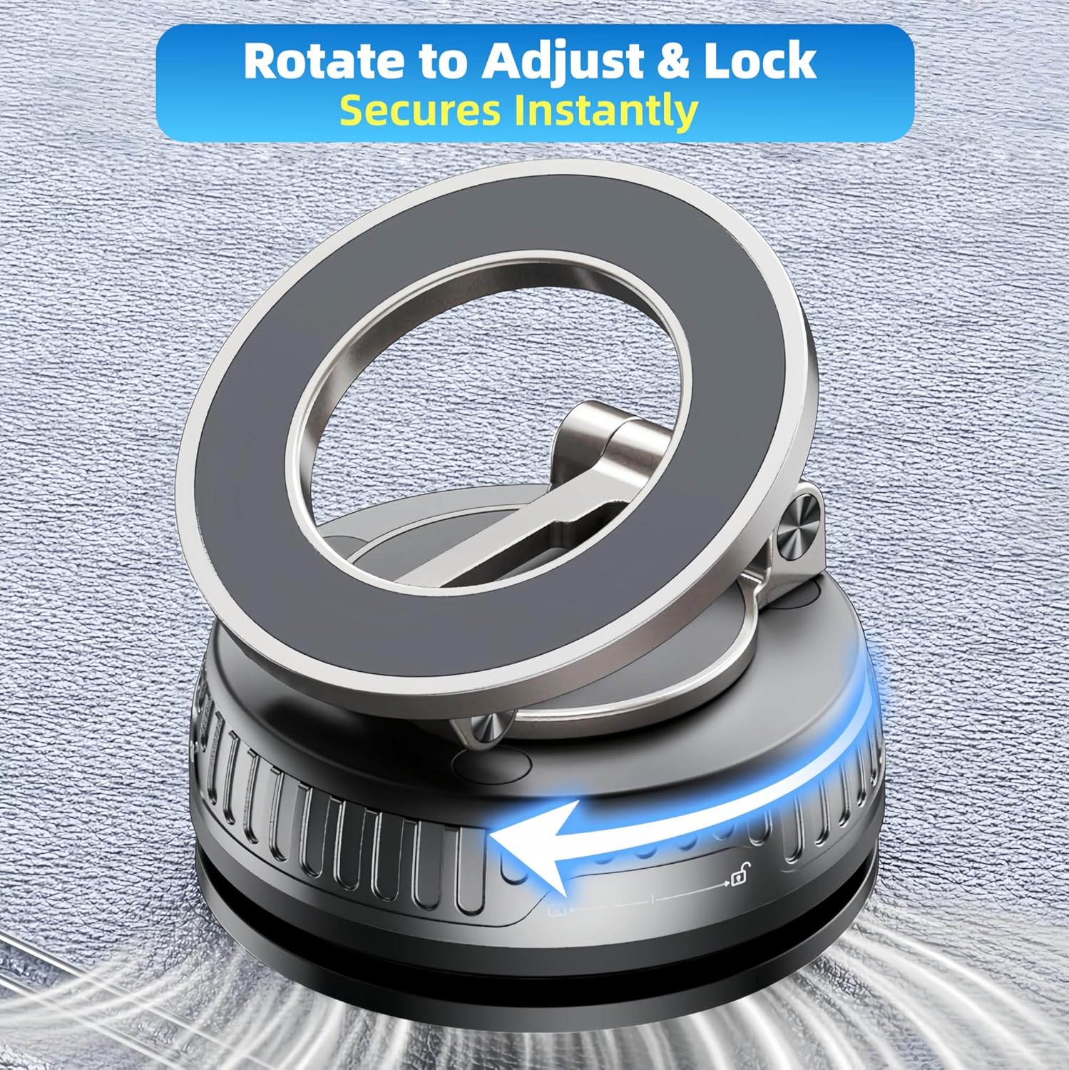 【Multi-Surface + Universal Use】Sticks firmly to dashboards, kitchen walls, gym equipment, and desks. Twist knob to lock—no tools needed.