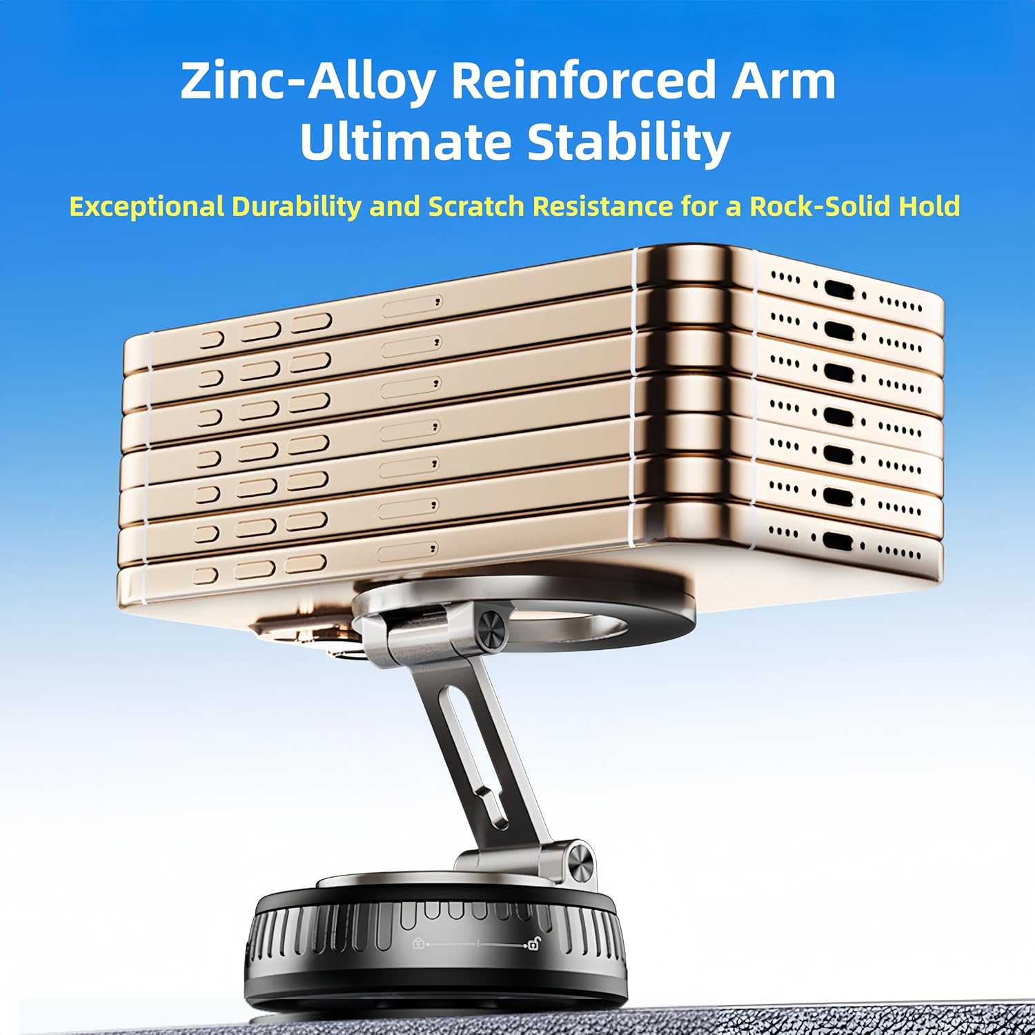 【Ultra-Stable Suction + Nano Gel】Upgraded vacuum suction with high-strength nano gel grips firmly on dashboards, windshields, and smooth surfaces. No residue, no scratches. Holds up to 180 lbs and withstands extreme temperatures (-40°F to 300°F). Tested over 9,999 times for long-lasting adhesion.