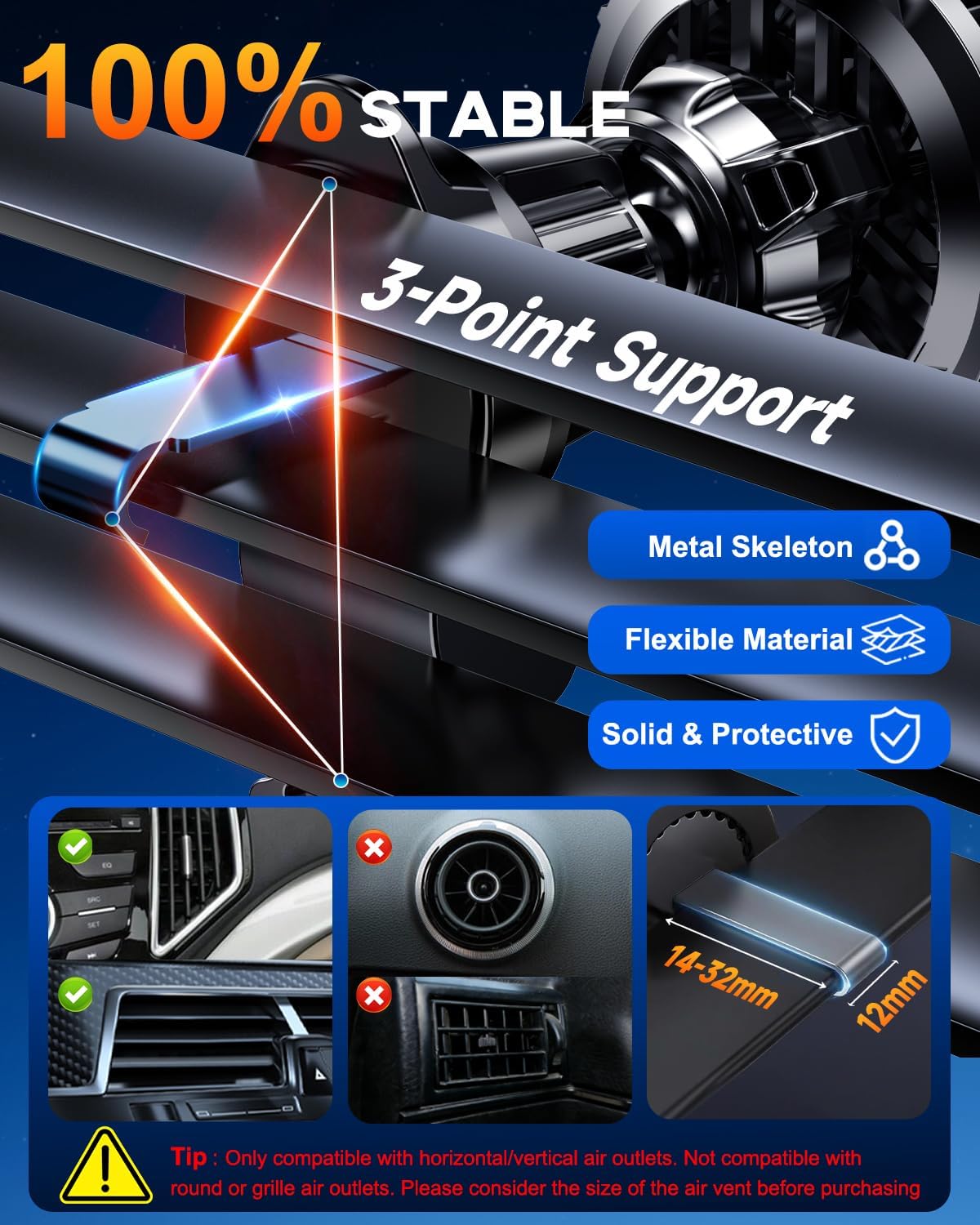 ✅Important Installation Note: The air vent metal hook only applicable to standard horizontal/flat noodle type vents (Fan blade spacing greater than 14mm). ✅ It is NOT compatible with the following types of vents: round, vertical, or mesh-style vents. For example, it may not fit vehicles such as: Tesla models, the 2017 Toyota Tacoma, the 2021 Jeep Wrangler, and the 2025 Honda Accord. To ensure a proper fit and optimal experience, please verify your vehicle’s air vent type before purchasing
