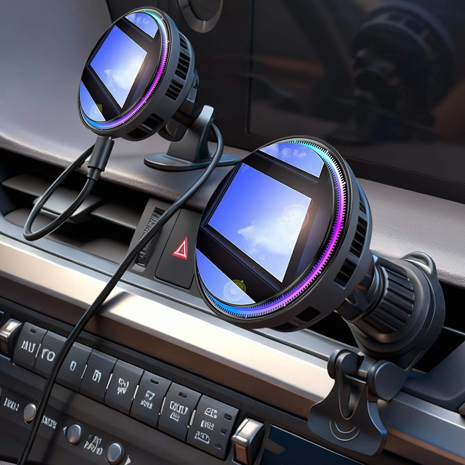 【Upgraded to N55 Powerful Magnets & RGB Light】 Our wireless car charging upgraded to N55 magnets, with 2500g holding, 250% stronger than the standard in the market, Your phone stays securely to the charger even on bumpy roads. This car charging holder is a top choice for keeping your phone charged and safe while driving. Equipped with RGB lights, you can accurately find the car charger after starting the car in the dark. The RGB lights will turn off when in use, and the LED lights will automatically turn off after 80 seconds of inactivity