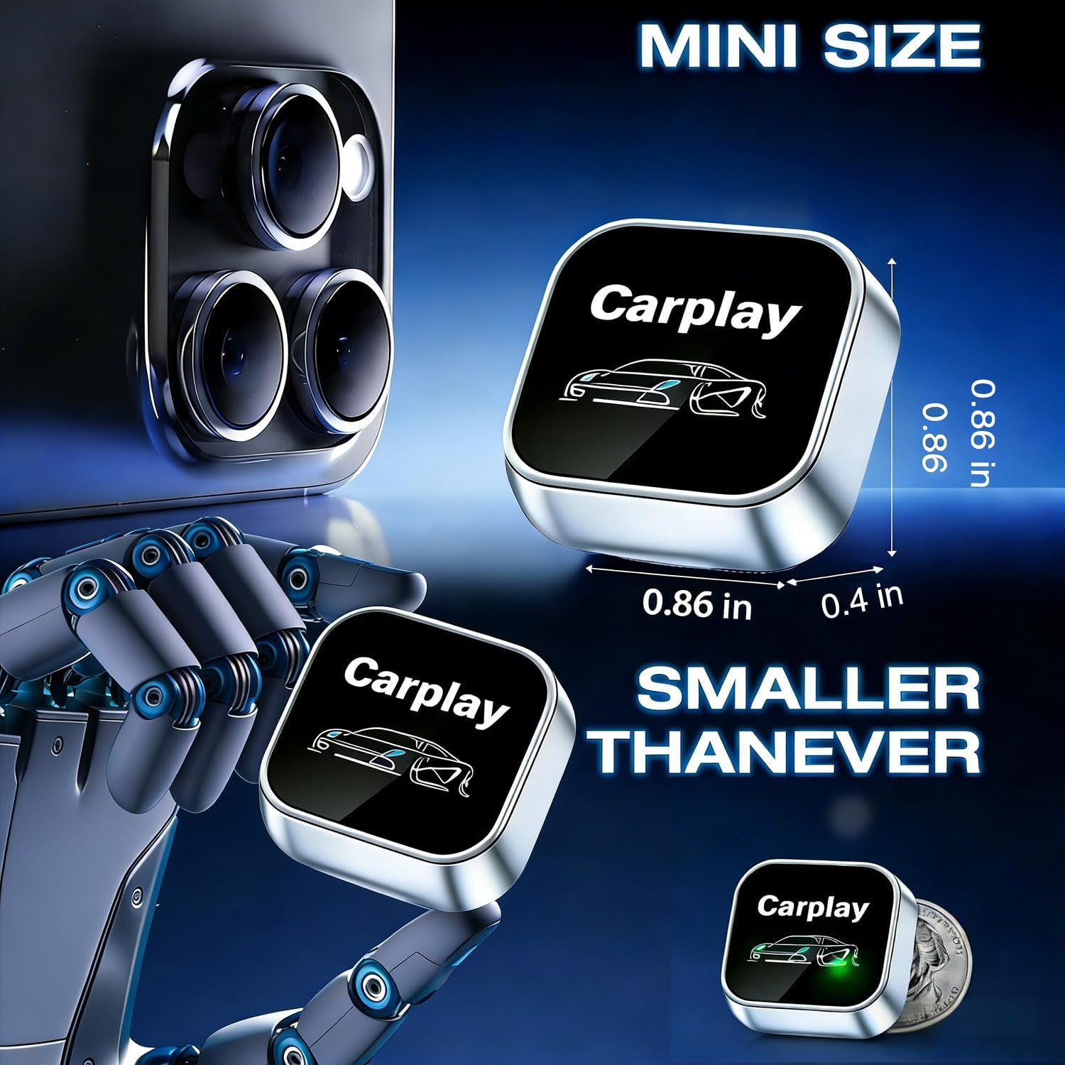 【Compact & Discreet Design】With a mini-sized, lightweight metal body, this wireless CarPlay adapter occupies minimal space. Its sleek, low-profile design integrates seamlessly into your vehicle’s interior, maintaining a clean and modern look without bulky gadgets.