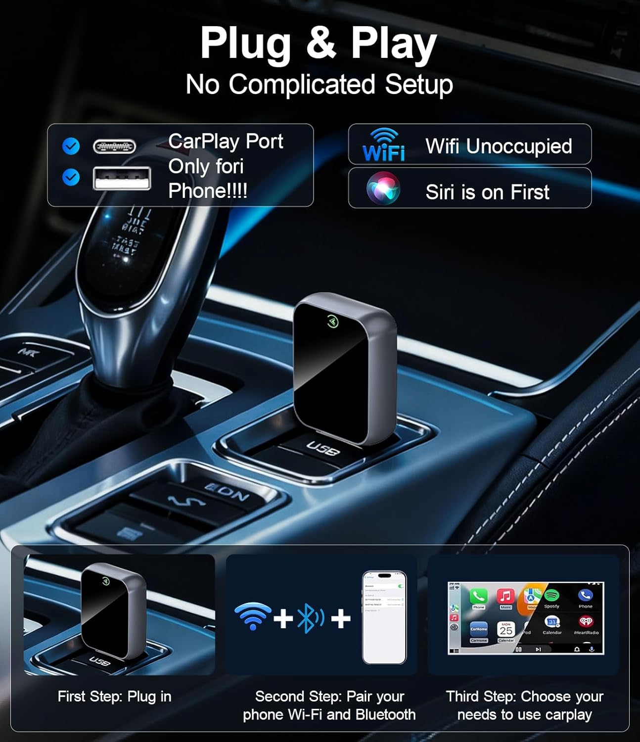 【Ultra-Fast 5-Second Auto Connection】Powered by an upgraded smart chip, this adapter detects your iPhone within 5 seconds after starting the engine. Once paired, it auto-connects every time, making sure your music and GPS are ready instantly.