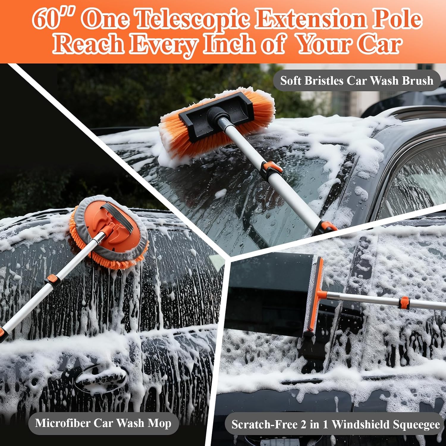 21Pcs Car Wash Kit with 60″ Heavy-Duty Extension Pole, Soft Car Wash Brush, Wheel & Tire Brush, Scratch-Free Car Mop Mitt & Window Squeegee, Detailing Tool for Car Exterior & Interior Cleaning