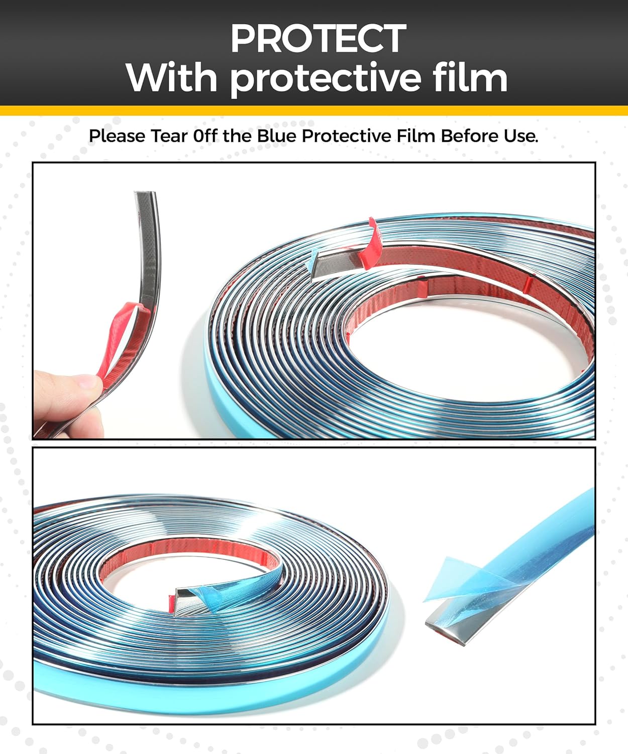 [Easy Installation] Chrome trim tape is made of high-quality self-adhesive tape, which is easy to install. No need to drill, simply peel and paste. With a glossy chrome finish, installation is quick and easy. This will make the surface of your car look more elegant and attractive without causing any damage to the surface.
