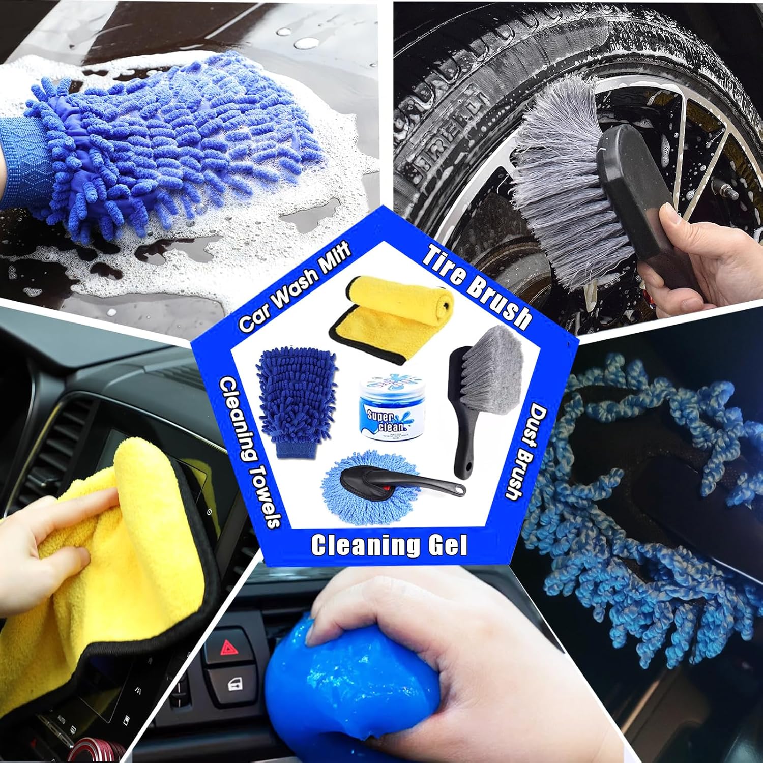 Our Car Cleaning Brush Set contains car detailing brushes, wheel brush, tire brush, microfiber wax applicator and washing mitt and etc, Contains everything you need to clean your car, helps to clean your car efficiently.