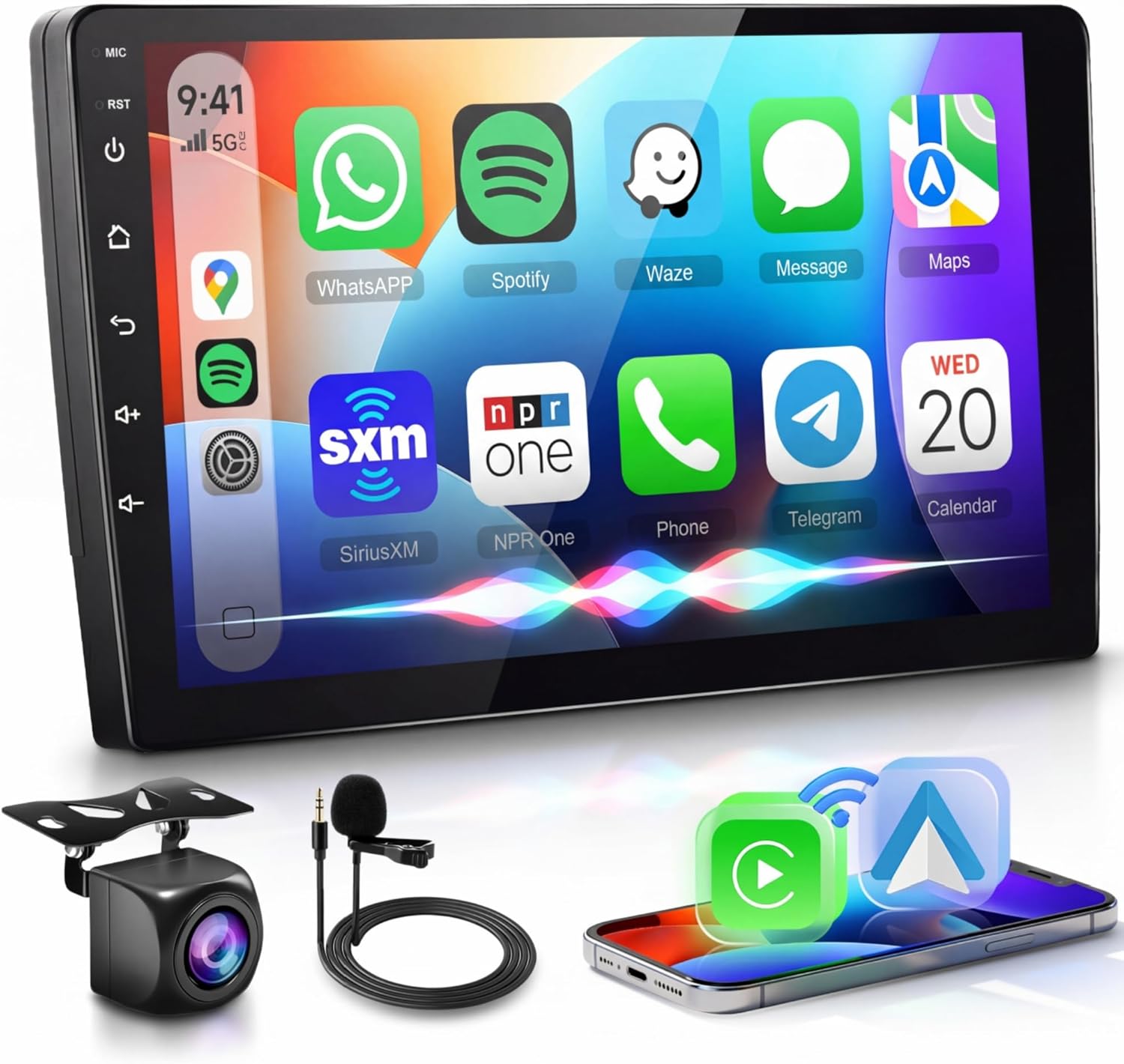 【Wireless Carplay & Wireless Android Auto】double din carplay support wired connection or wireless connection to carplay or andriod auto, connect to mobile phone, access mobile phone address book, mail, notification, map navigation, music, video and other information, and realize voice control.