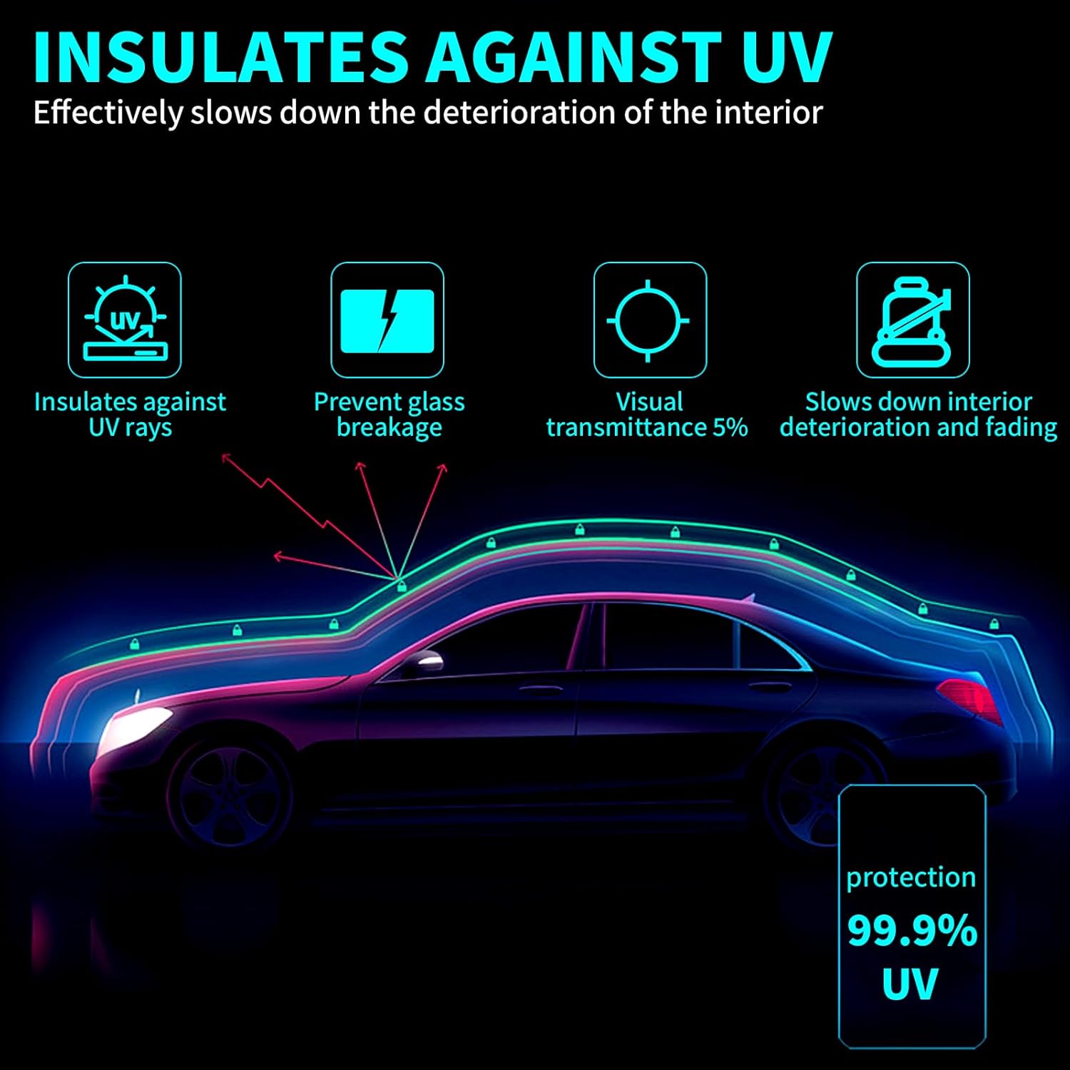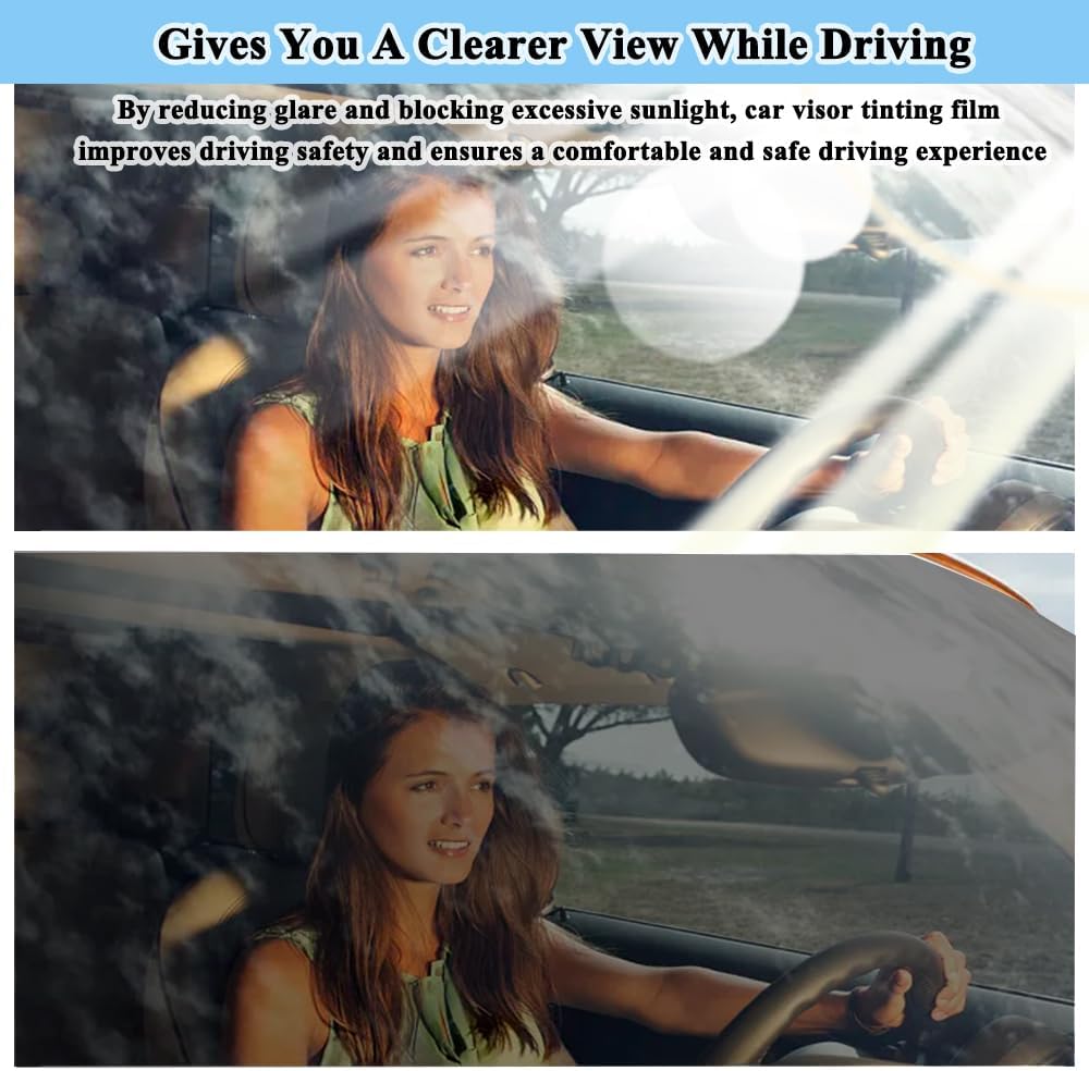CAR WINDOW SUN TINT: Windshield sun visor tint can function as a solar protection film to shade sunlight and prevent sun glare; In this way, car window sun visor strip can clear your vision on the road as well as improve your driving safety