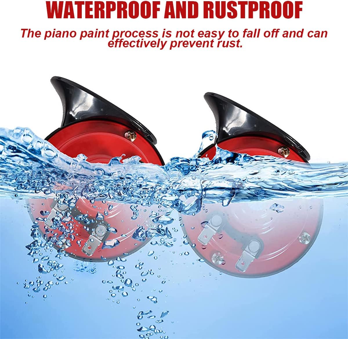 2PCS 300DB Super Loud Train Horns, 12V Waterproof Air Horns Replacement Kit, Car Air Electric Snail Double Horn, Automotive Accessories Universal for Car, Motorcycle, Truck, Bike, Boat (Red)