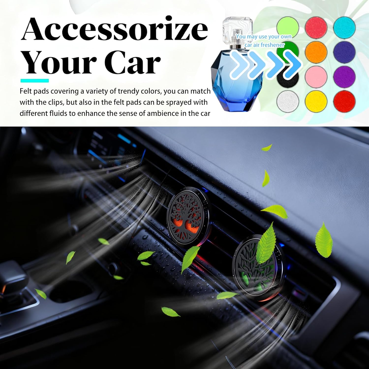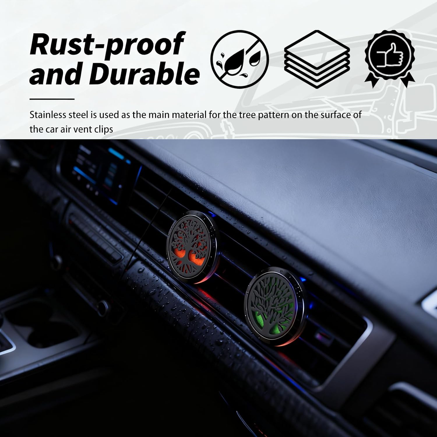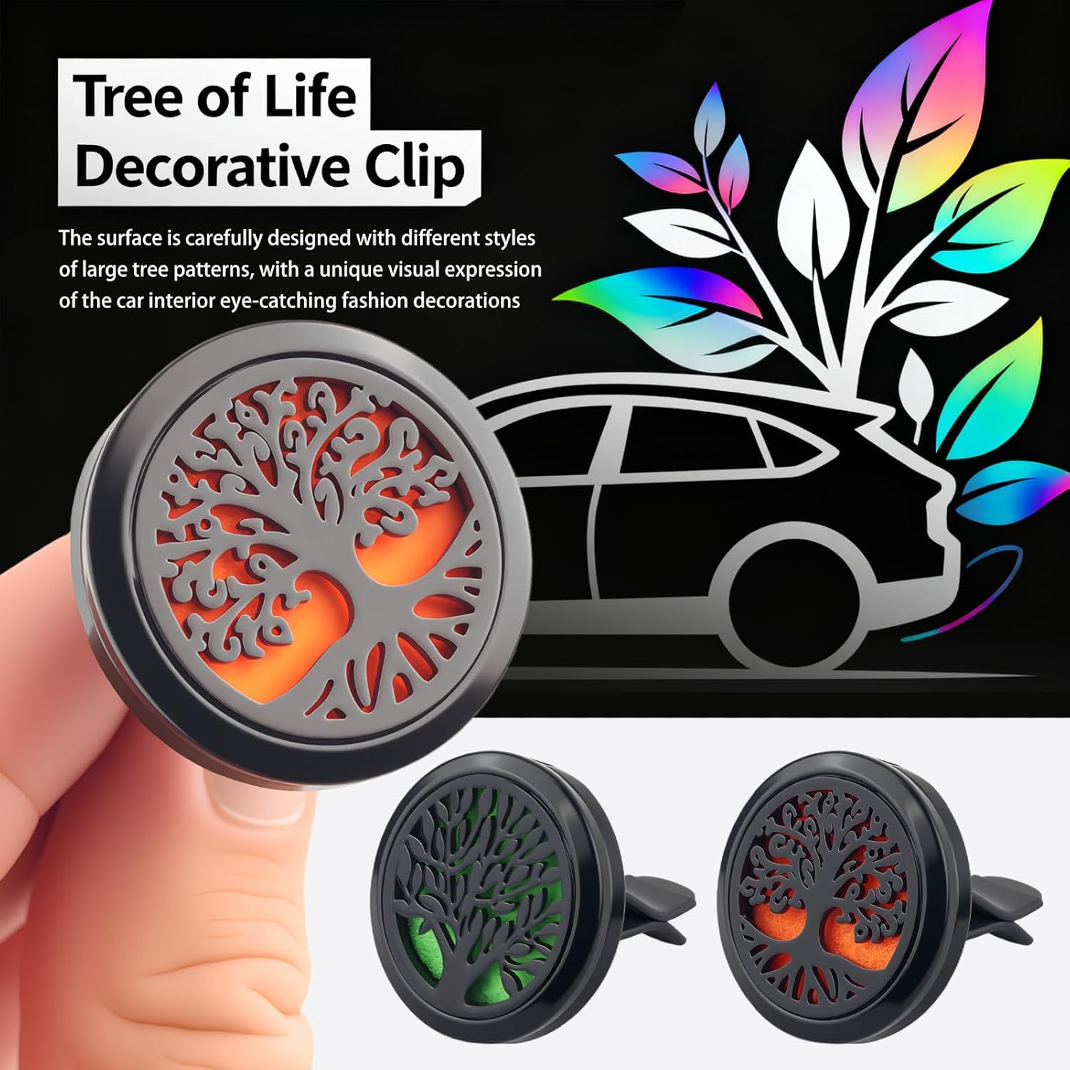 Tree of Life Decorative Clip: Our car essential oil diffuser vent clips are very ingenious in appearance design, the surface is carefully designed with different styles of large tree patterns, with a unique visual expression of the car interior eye-catching fashion decorations