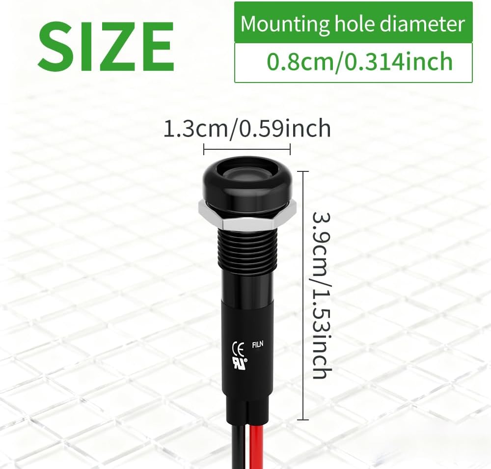 【Simple Polarity-Free Wiring & Installation】: This indicator requires an 8mm installation aperture, equipped with a 20cm wire, designed for easy setup, and has a clear non-polar wiring system. Quickly integrate it into your electrical project using simple installation steps without confusion or compatibility issues, making installation easier